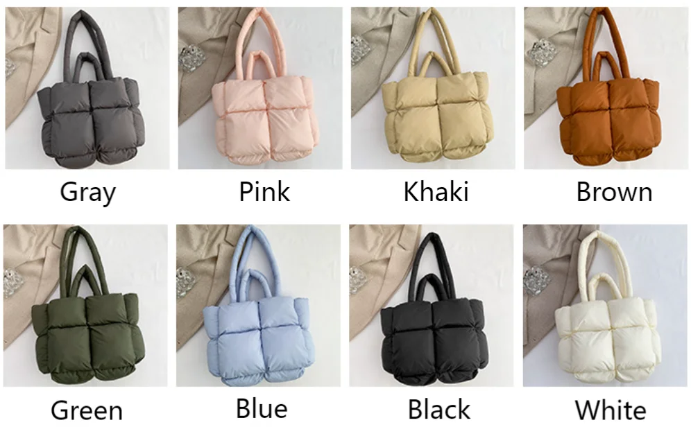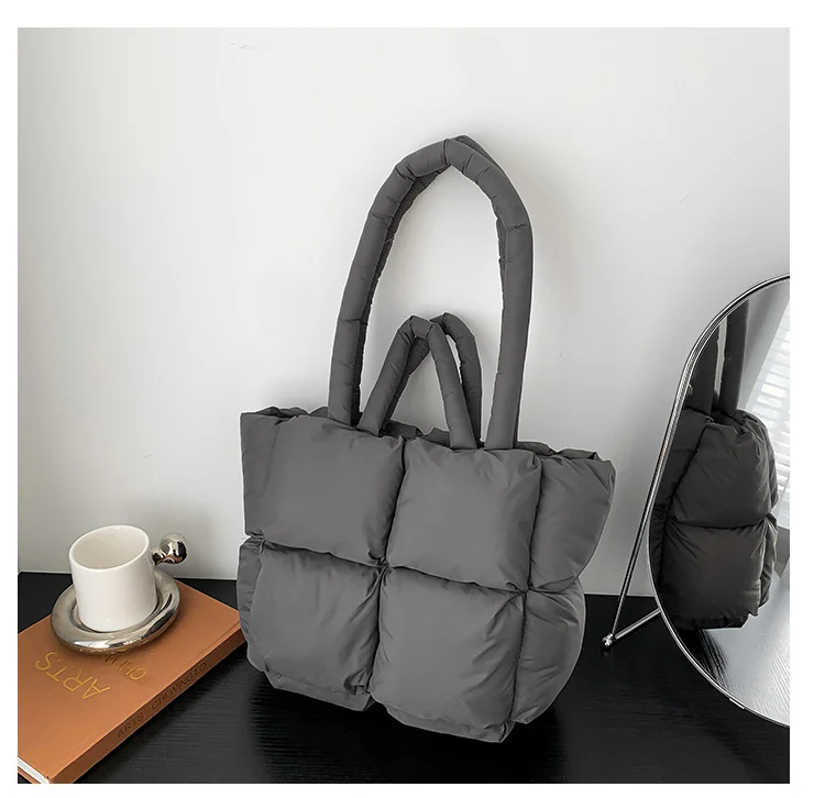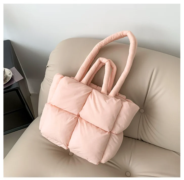 Factory Wholesale Cotton Tote Bag Winter Autumn Lightweight Soft Puffy Handbag for Ladies Fashionable Quilted Cotton Handbag