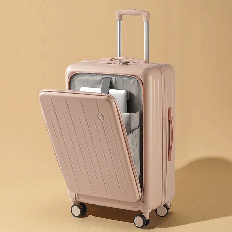 Multi-Functional Luggage With Front Open Compartment Hard Shell Luggage With Spinner Wheels Outdoor Travel Suitcase