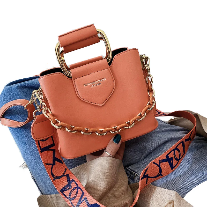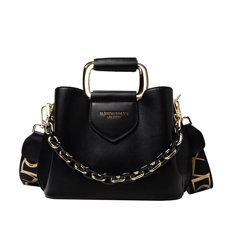 Hot Sale Fashionable Single Shoulder Bag Solid Color Chain Cross-body Bag Letter Pattern Lady Bucket Handbag with Zipper Closure