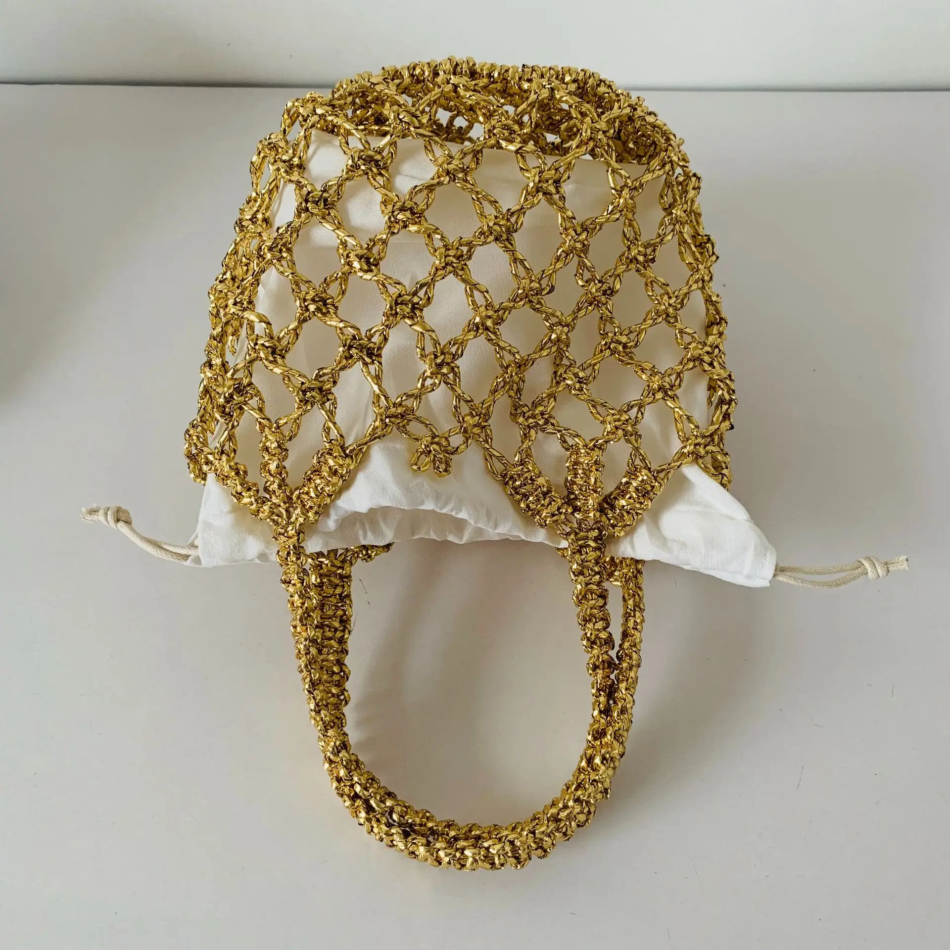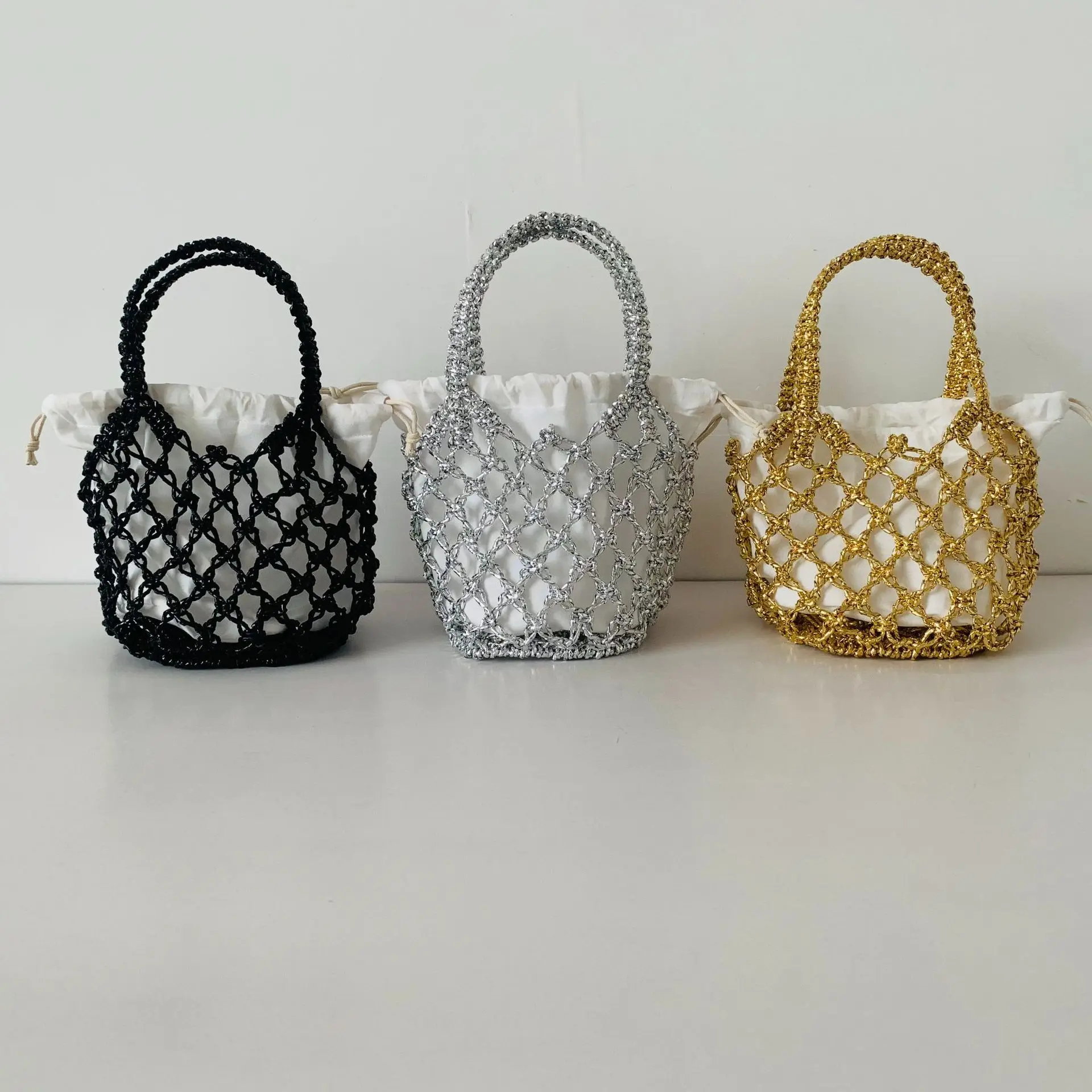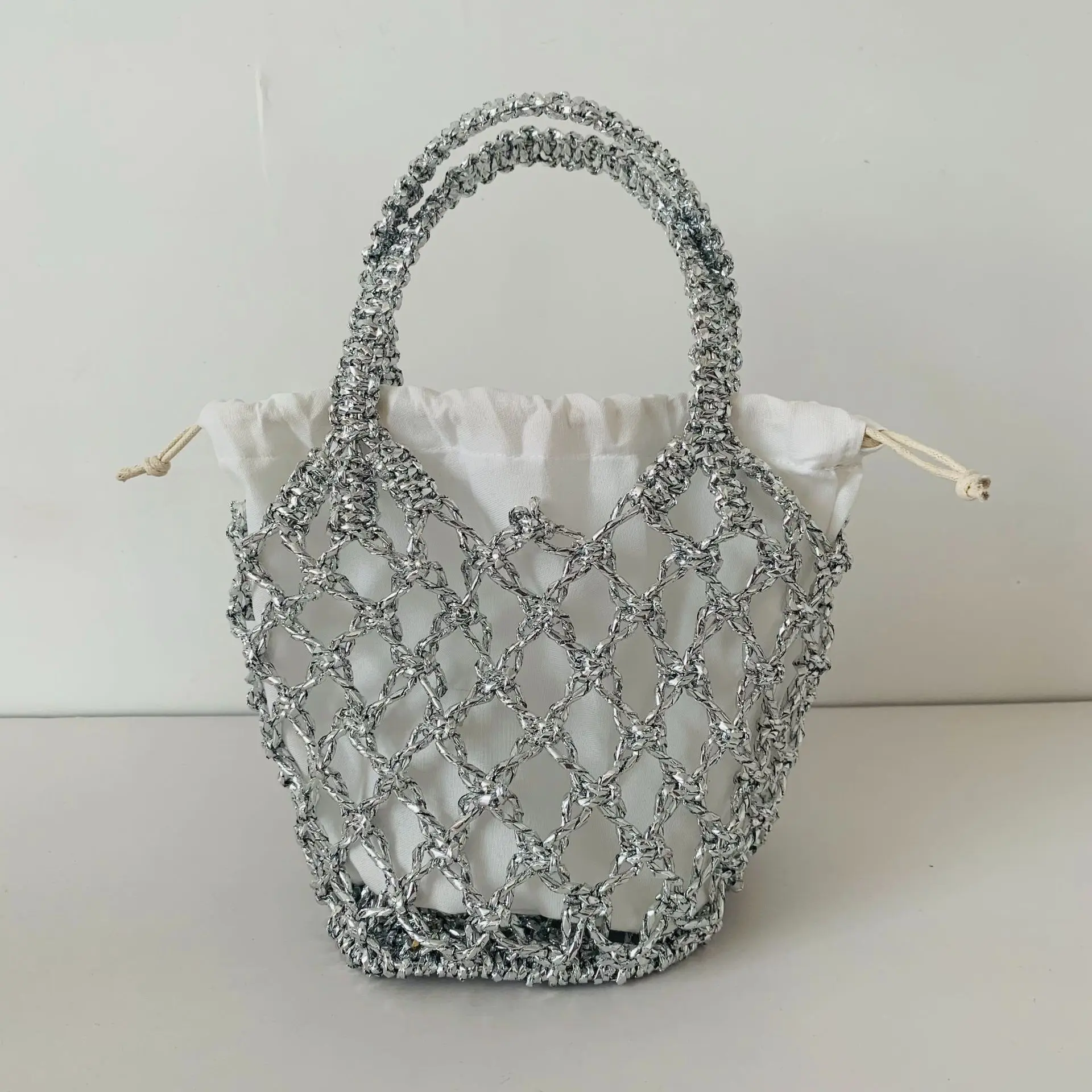 Bright Rope Hollowed Woven Bag for Women Simple Beach Bag Handle Woven Handbag