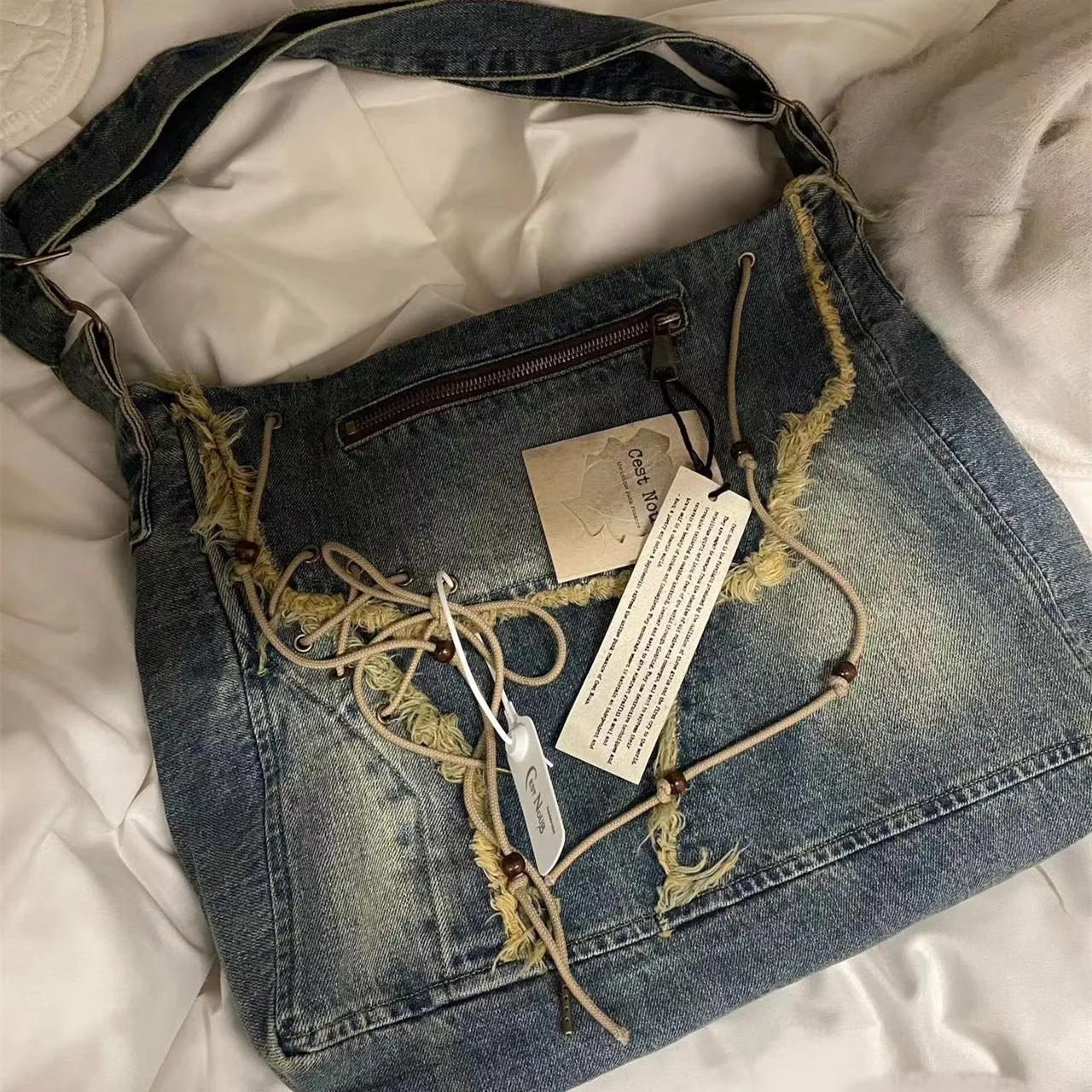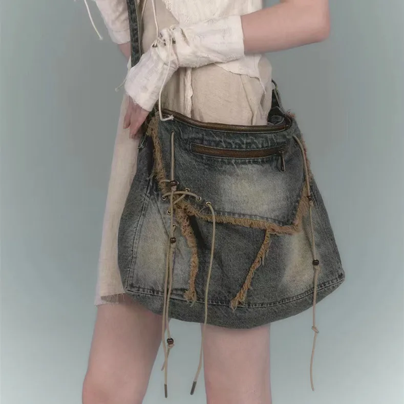 Women's Denim Crossbody Bag Single Shoulder Bag Large Capacity Shopping Bag