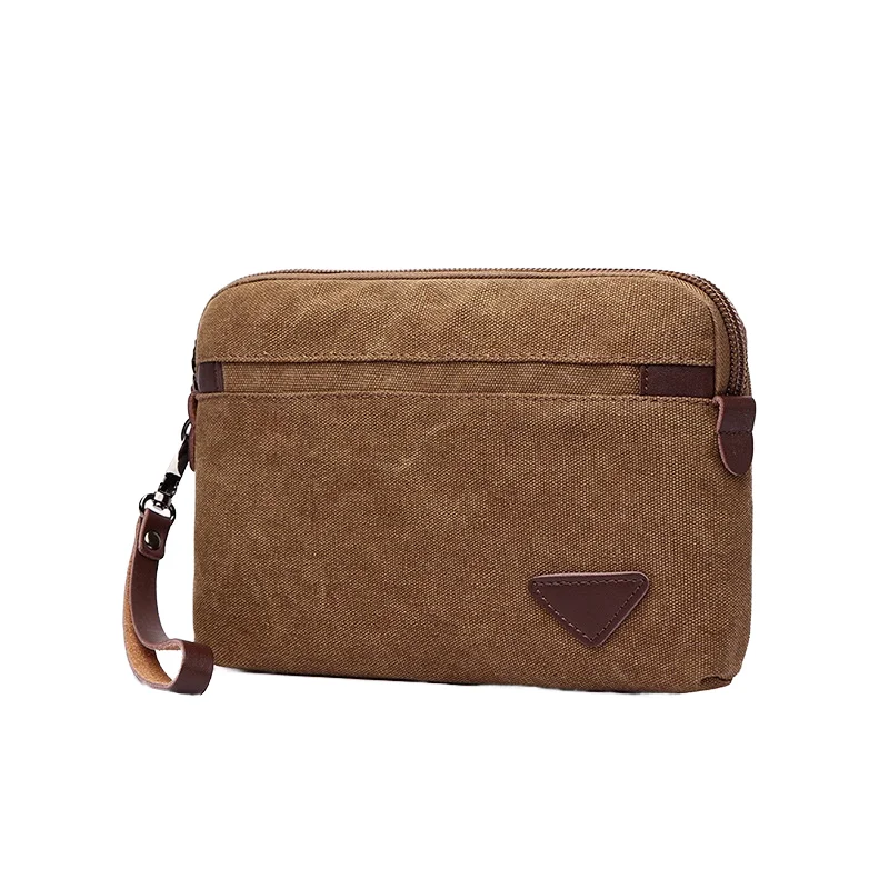 Factory Wholesale Canvas Portable Bag with Zipper Closure Clutch Bag for Men Purse Pouch Bag with Hand Strap for Card Coin
