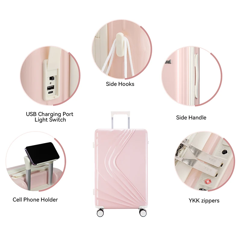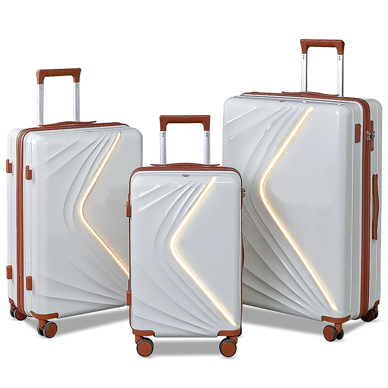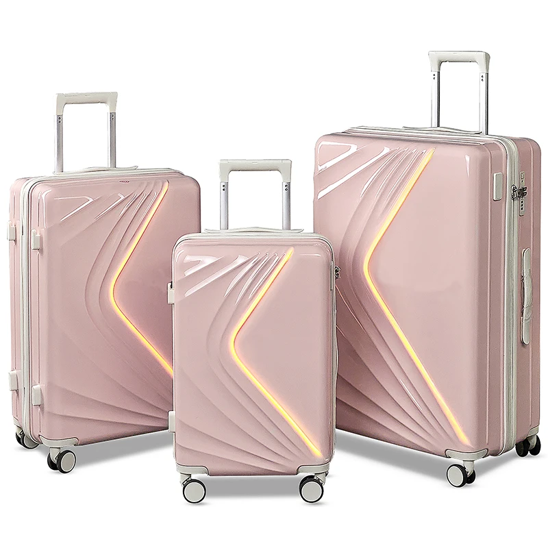 Innovative Luggage ABS+PC Material 20/24/28 Inch Smart Light Suitcase with USB Port and Multi-Color Glow Light