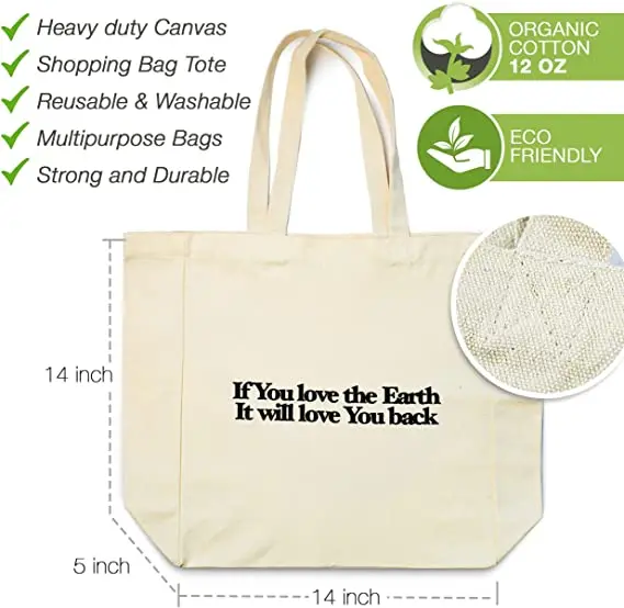 Heavy Duty Eco Friendly Cotton Grocery Shopping Canvas Bag Tote