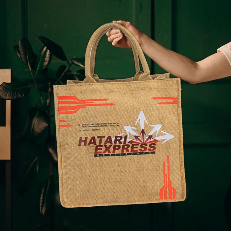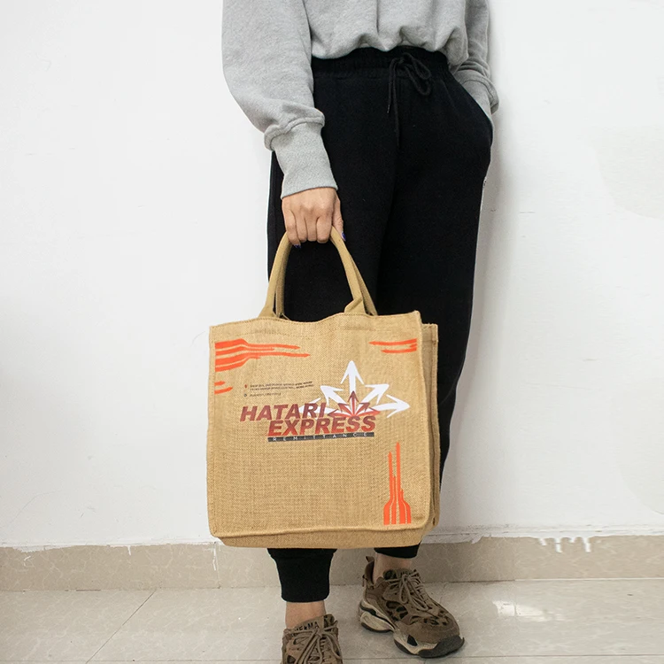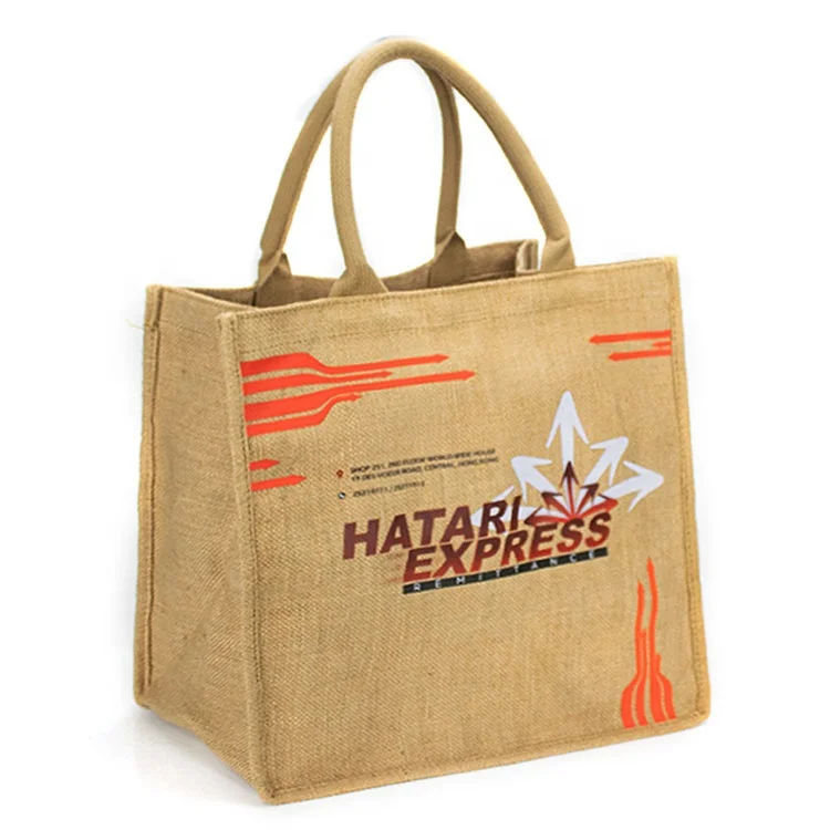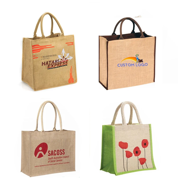 Custom Printed Logo Promotional Recycle Natural Burlap Gift Jute Bag Shopping Tote