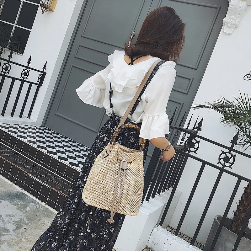 Wholesale fashion handmade rattan bucket shoulder sling bag