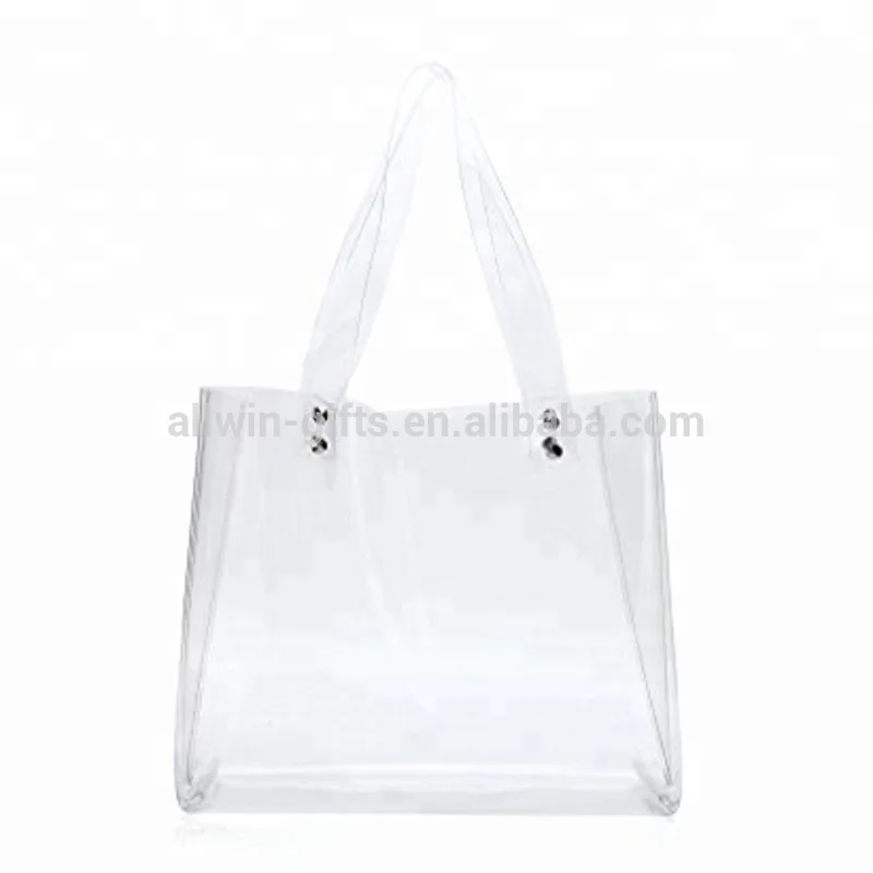 Customized handbags fashion women ladies waterproof pvc transparent clear tote bags