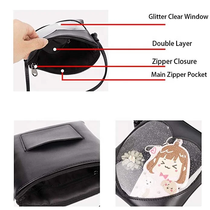 Adjustable Small Clear Heart Cross-Body Ita Bags PU Leather Cell Phone Wallet Shoulder Custom Ita Bag