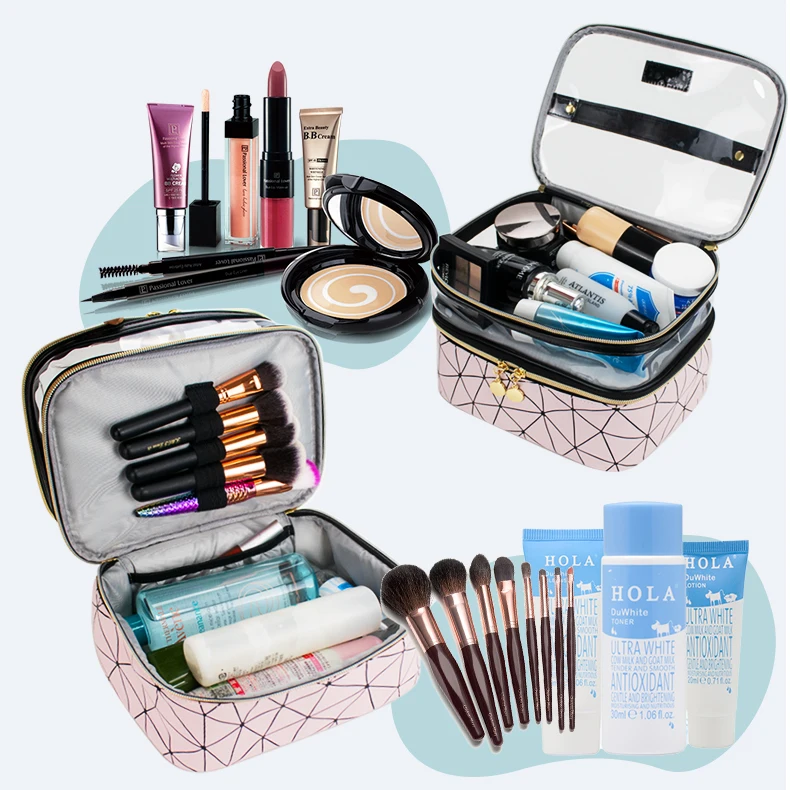 Women Transparent Cosmetic Brushes Toiletry Organizer Girls Waterproof PVC Custom Clear Makeup Bags