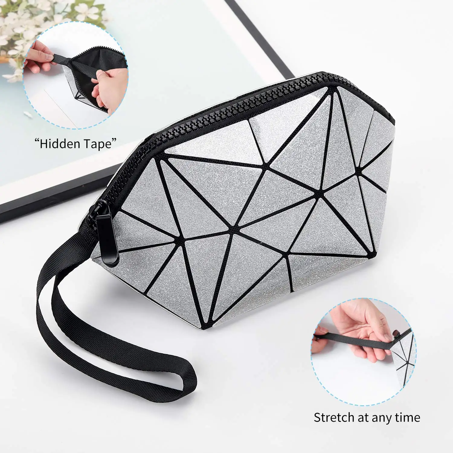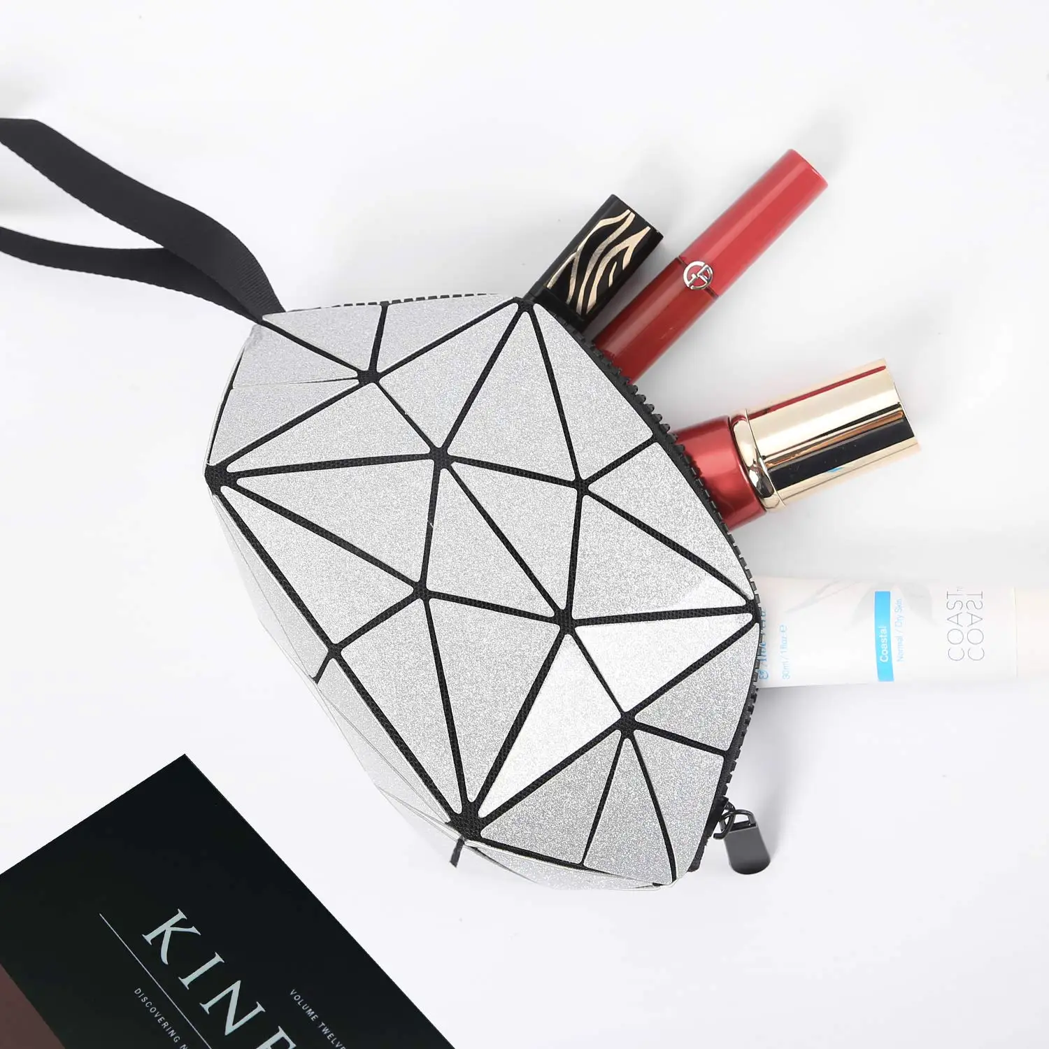 Fashion Girls Lingge Cosmetic Bags & Cases Girls Pu Leather Waterproof Geometric Cosmetic Bag
