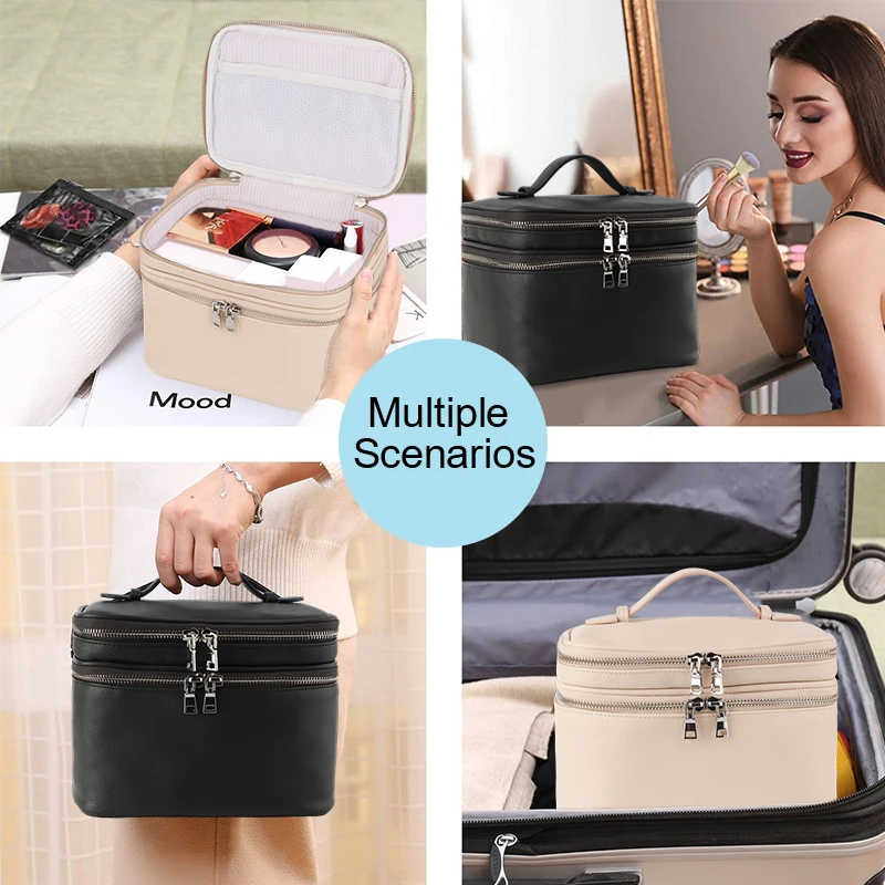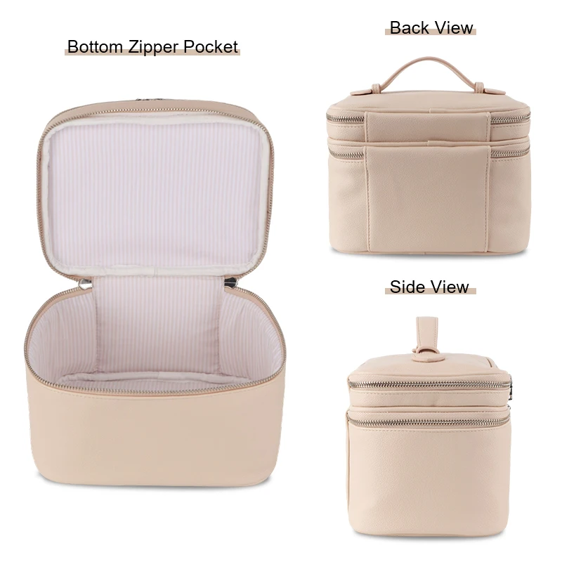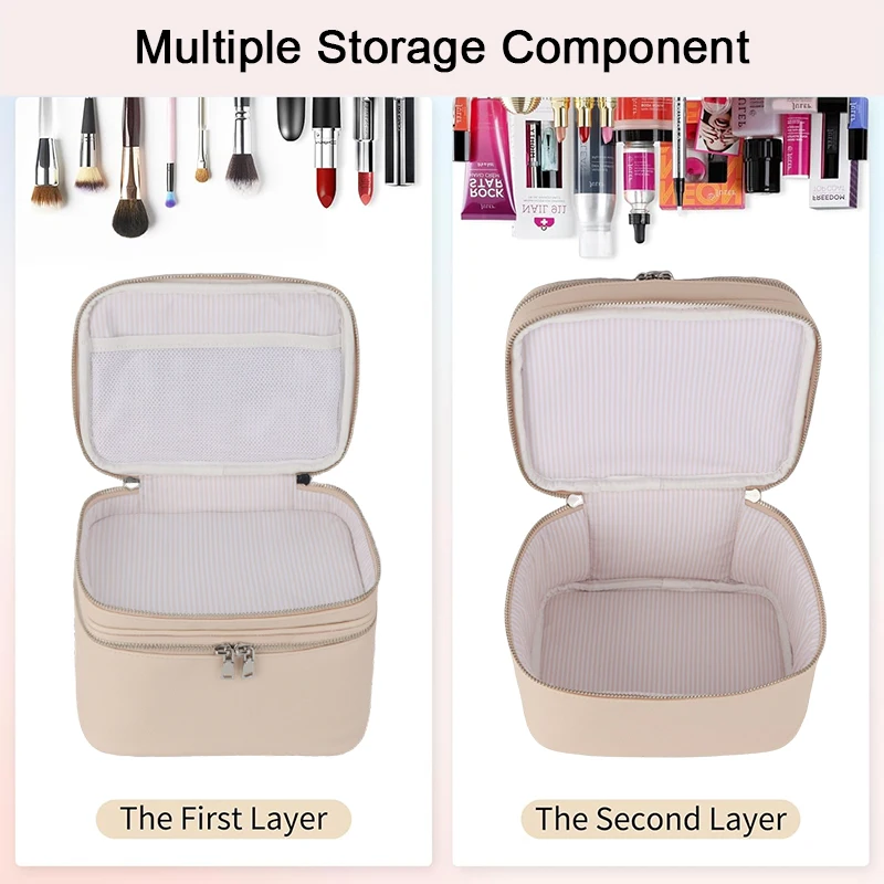 Custom Logo Fashion Letter Portable Multifunctional Eco-Friendly Polyester Soft Handle Cosmetic Bag Makeup Case Multiple Layers