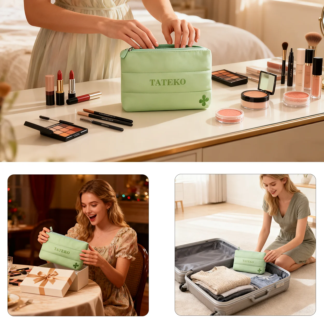 OEM Factory Custom Design Beauty Skincare Makeup Bag Washable Cute Toiletry Pouch Puffer Quilted Neoprene Cosmetic Bag for Women