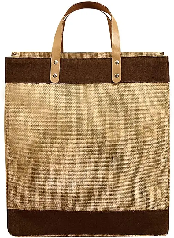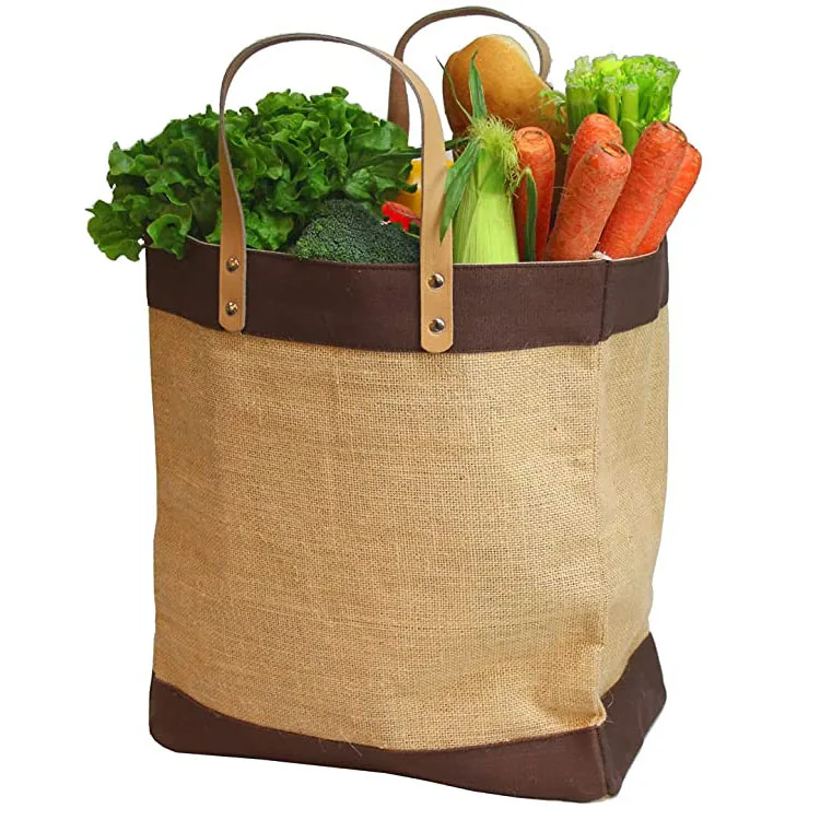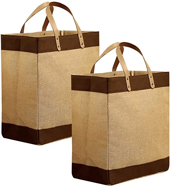 Eco Friendly Burlap Tote Shopping Grocery With Leather Handle Market Jute Bag