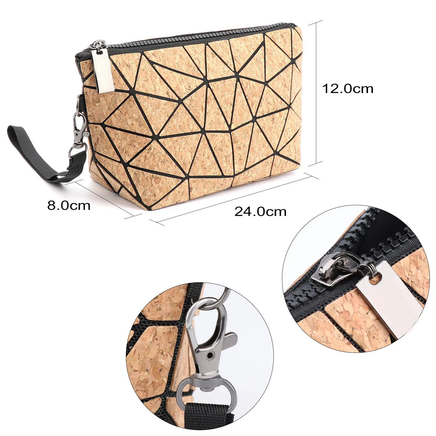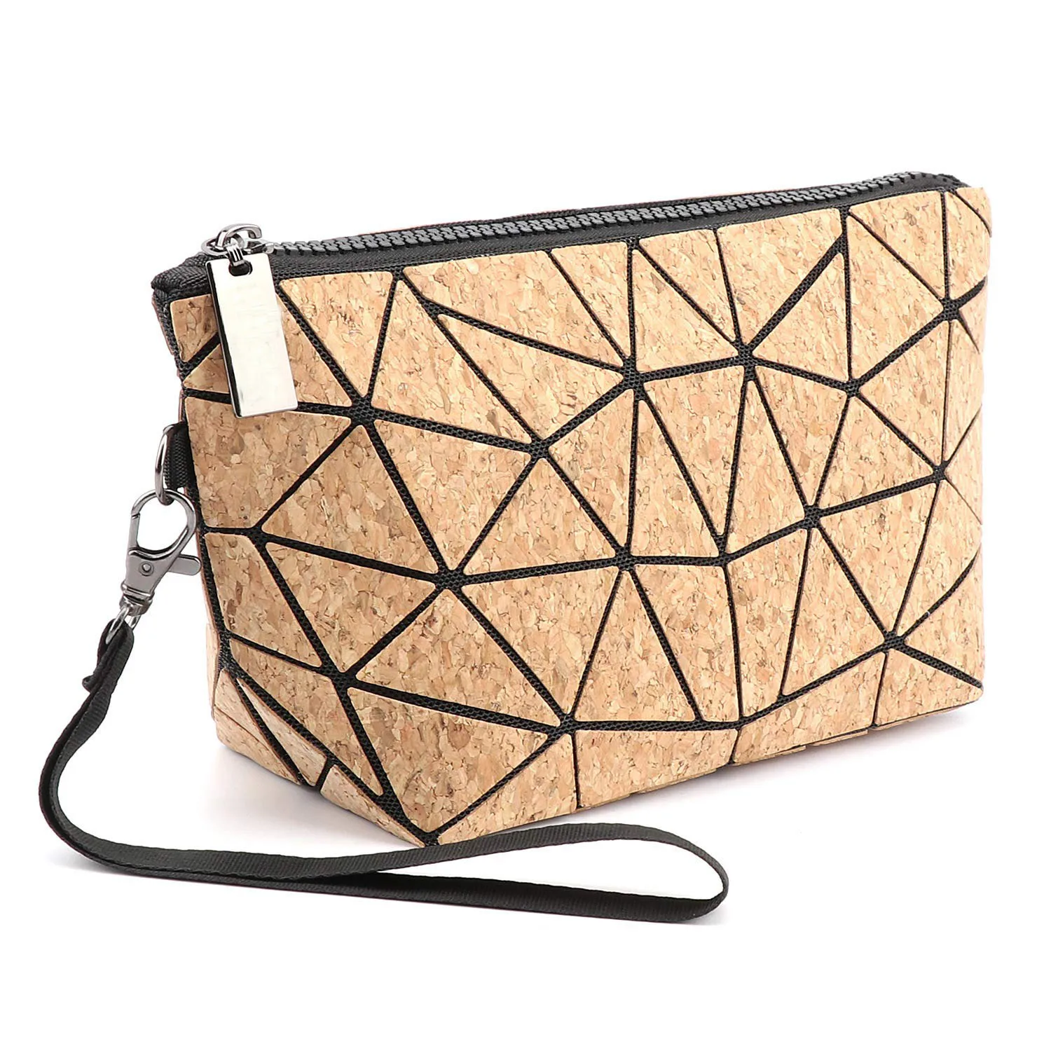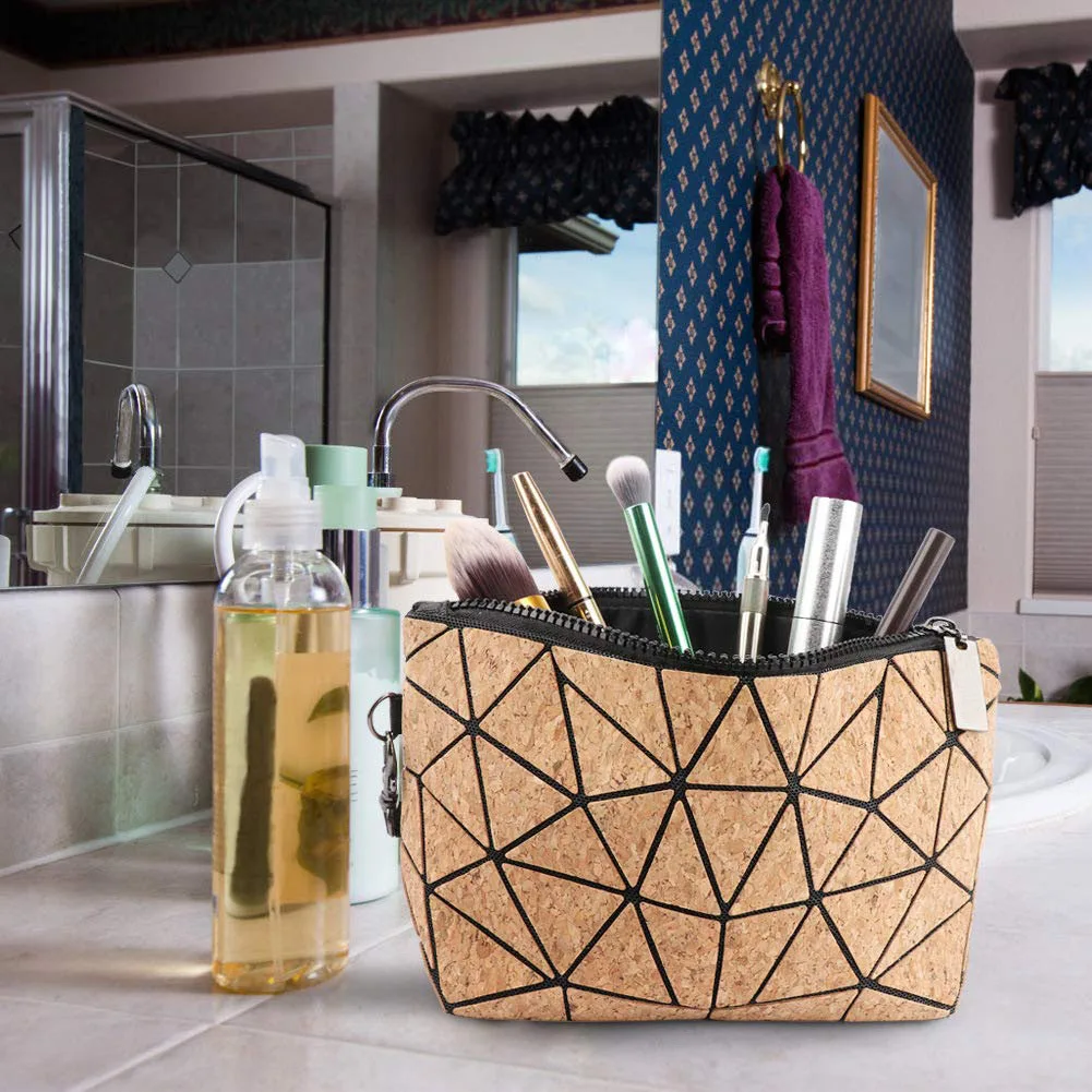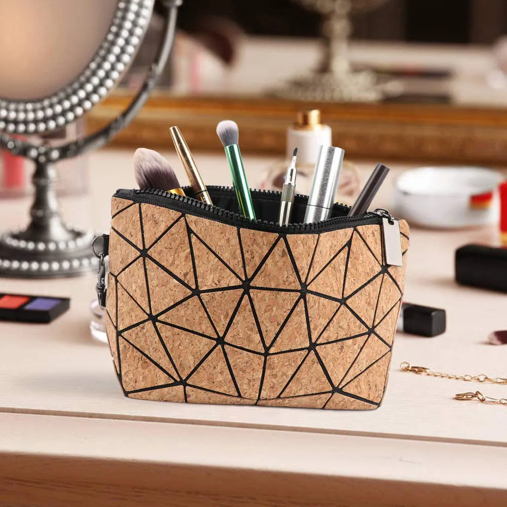 Travel Girls Small Makeup Pouch Geometric Natural Cork Cosmetic Bag