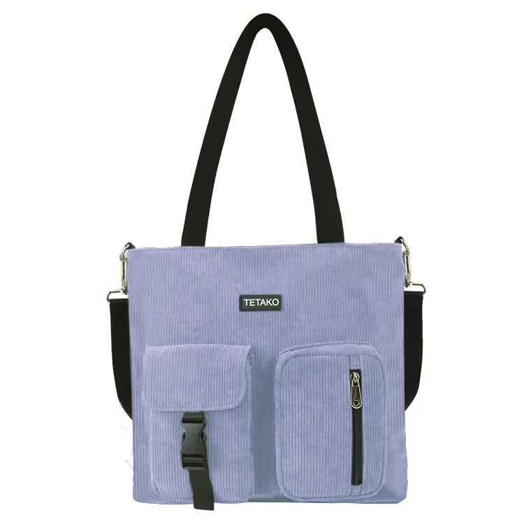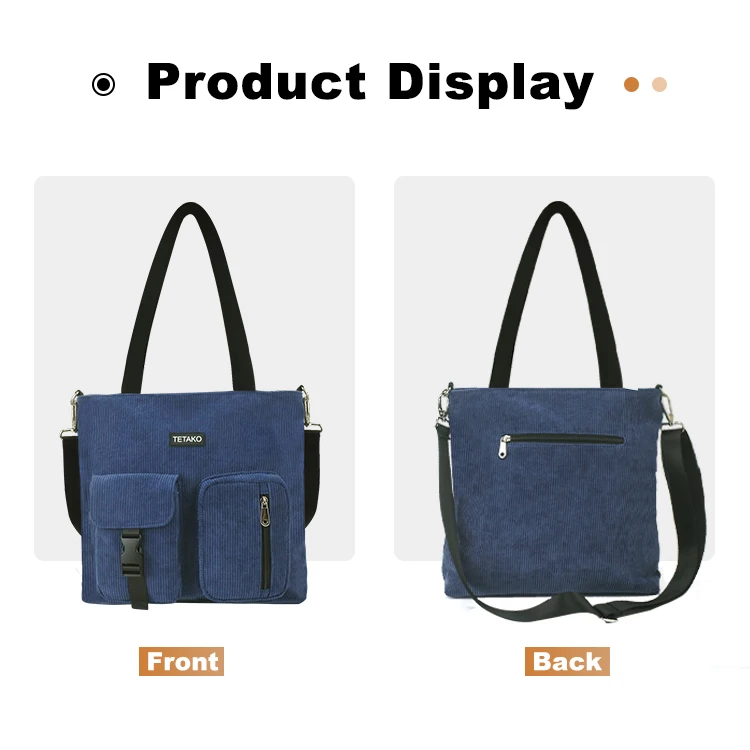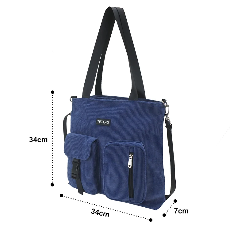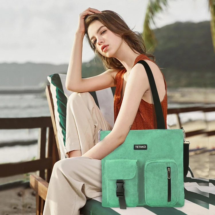 Women's Casual Medium Corduroy Crossbody Tote Bag with Zipper Closure and Custom Logo Shopping Bag