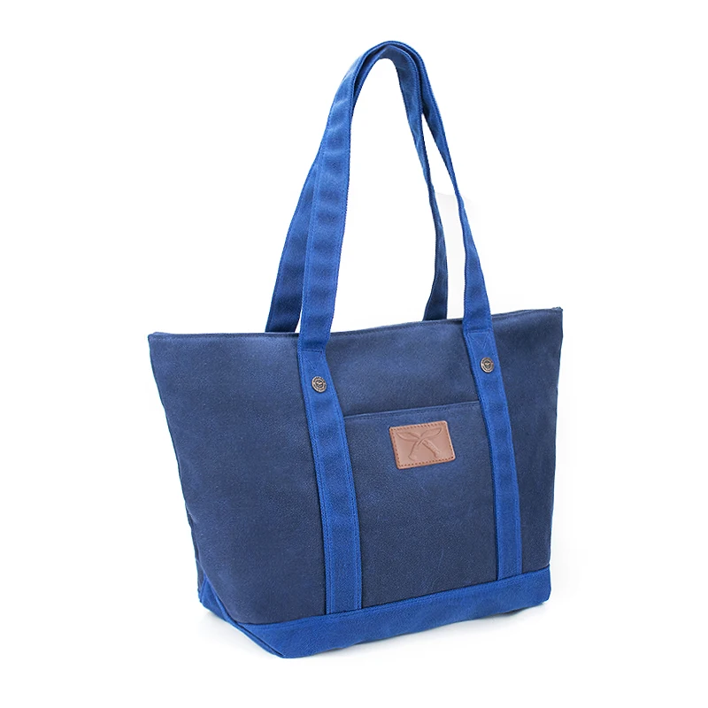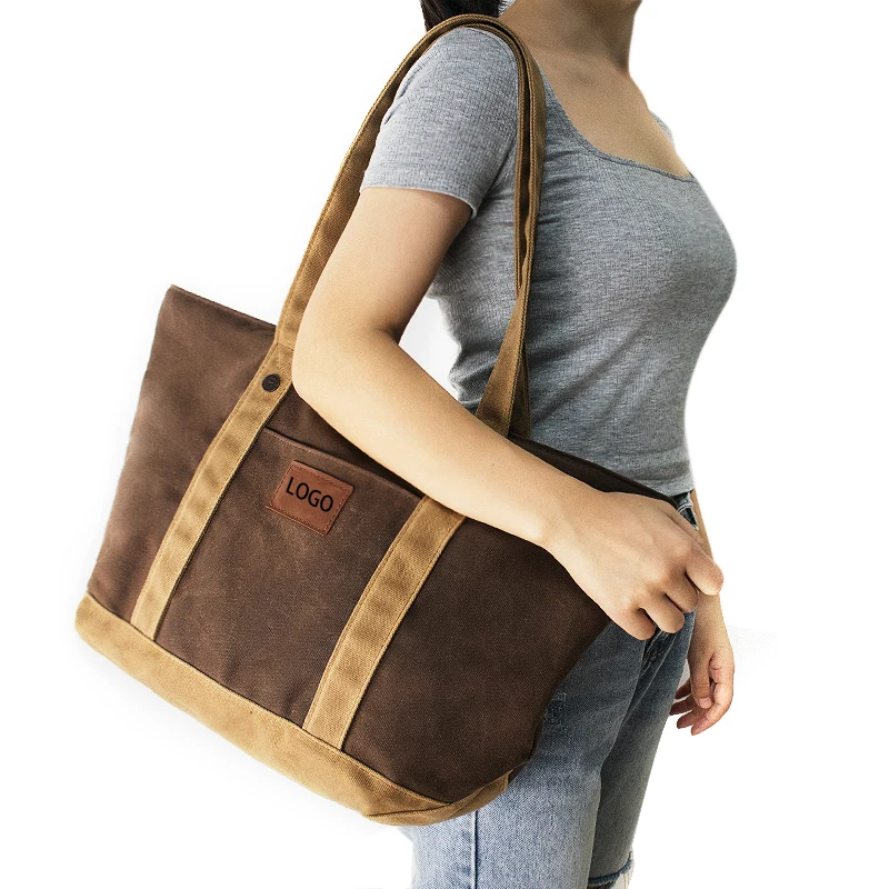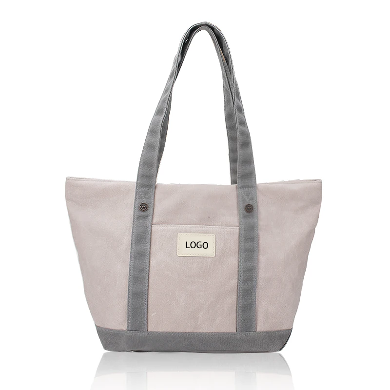 Custom Logo Large Reusable Vintage Plain Heavy Duty Shoulder Beach Shopping Waxed Canvas Letter Pattern Tote Bag