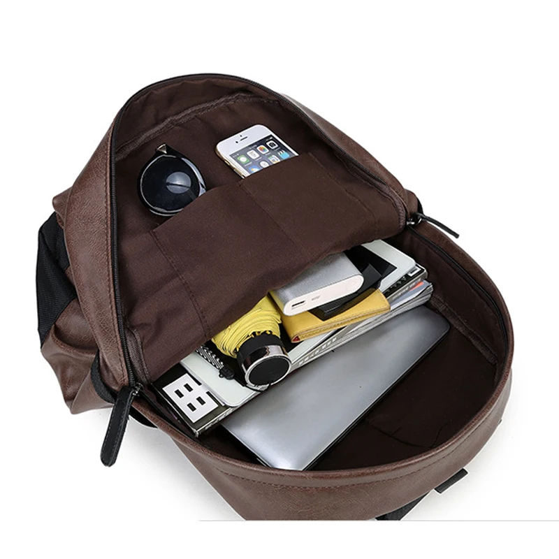 Custom Fashion Waterproof Zipper Closure Black Brown Mini School Anti Theft Laptop PU Leather Backpack