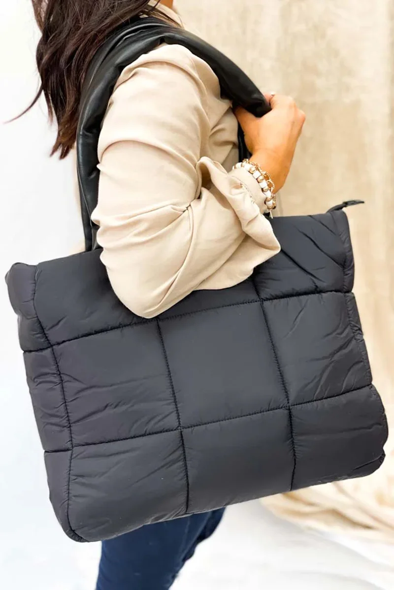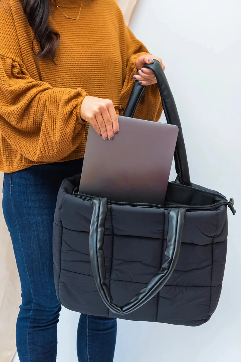 Custom Logo Large Puffy Quilted Nylon Puffer Tote Bag for Women Water-Resistant and Portable with Zipper Closure