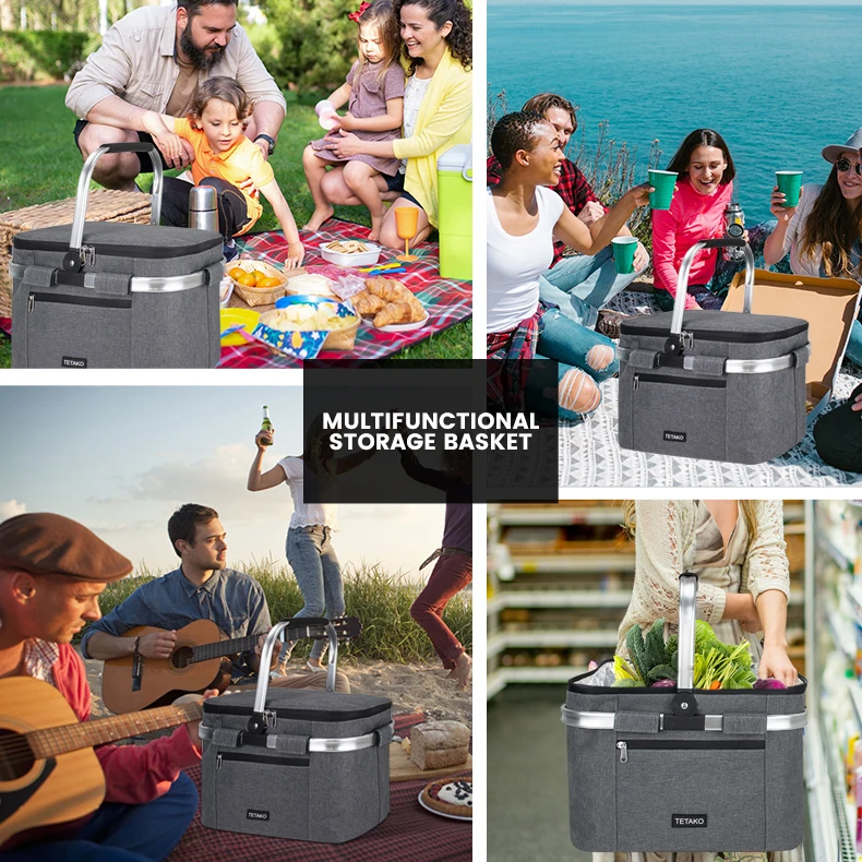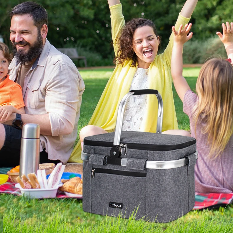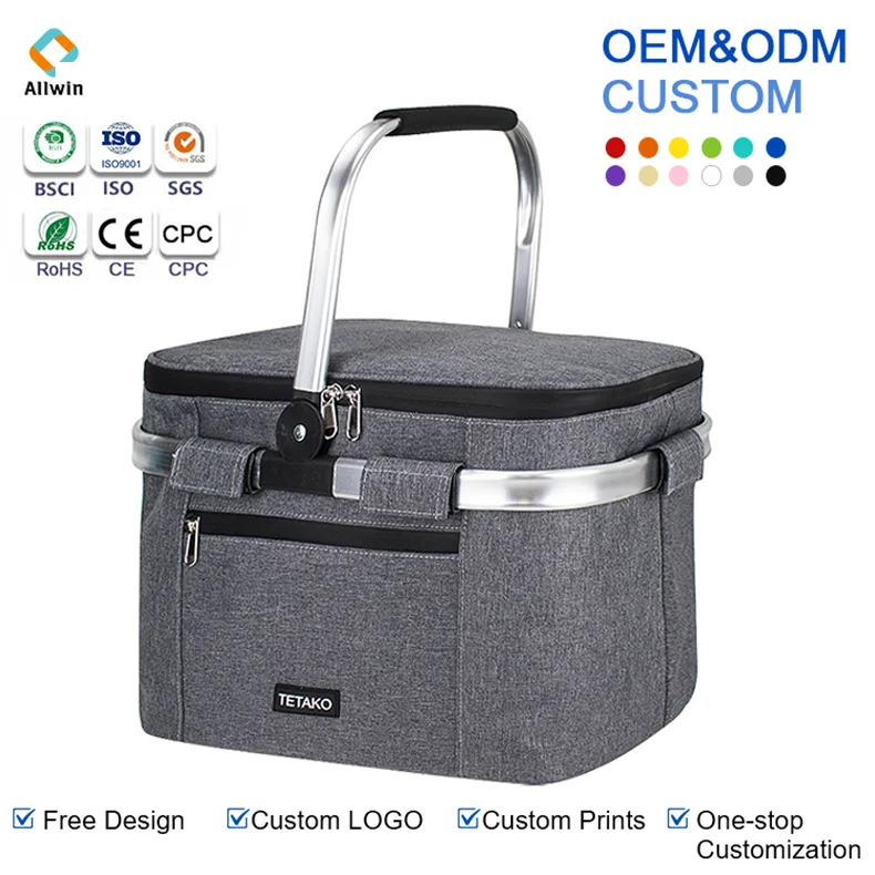 Foldable Outdoor Portable Custom Food Thermal Cooler Picnic Basket Insulated Lunch Bag