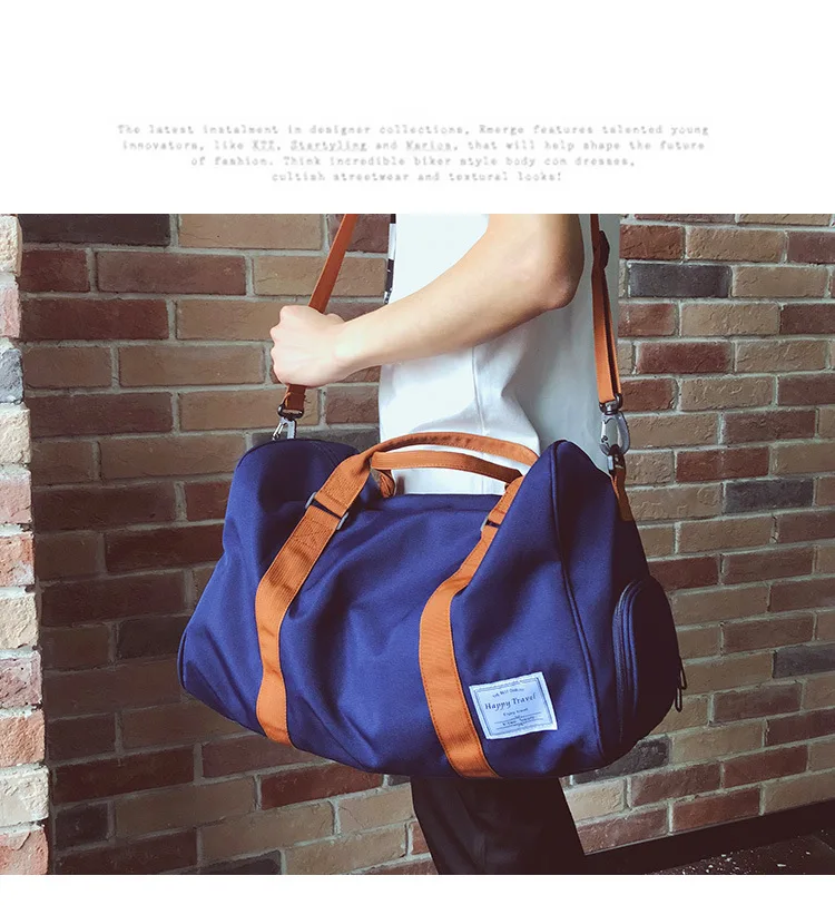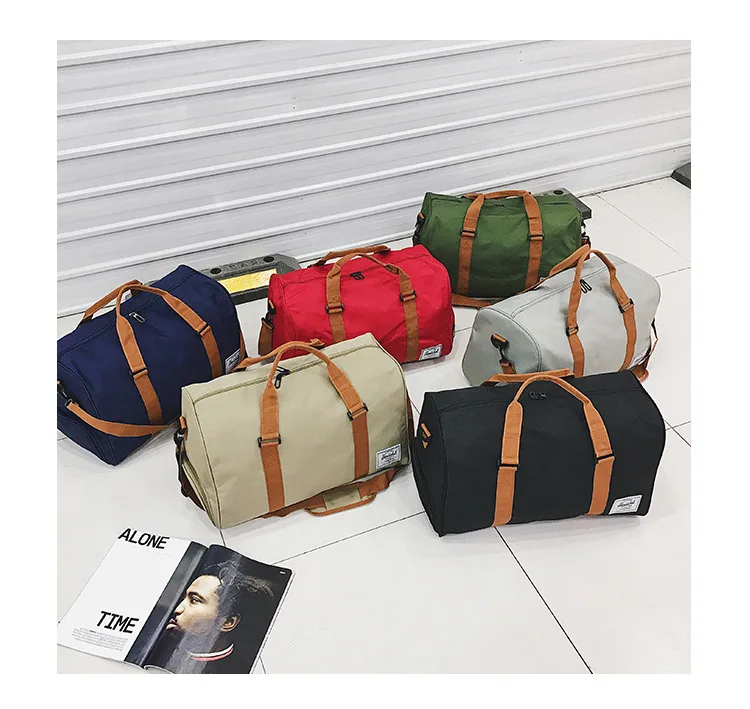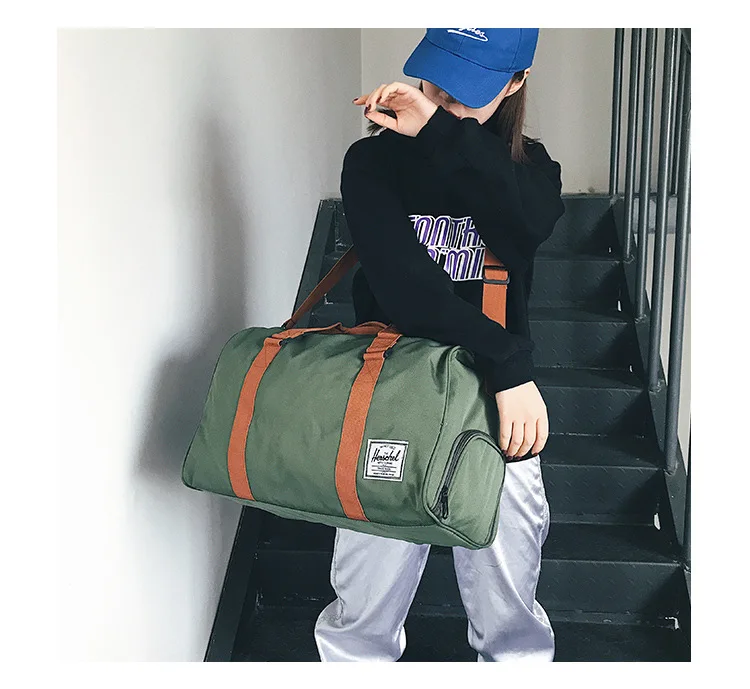 Large Capacity Men's Duffle Bag for Gym Fitness Travel Polyester Material with Zipper Closure and Letter Pattern