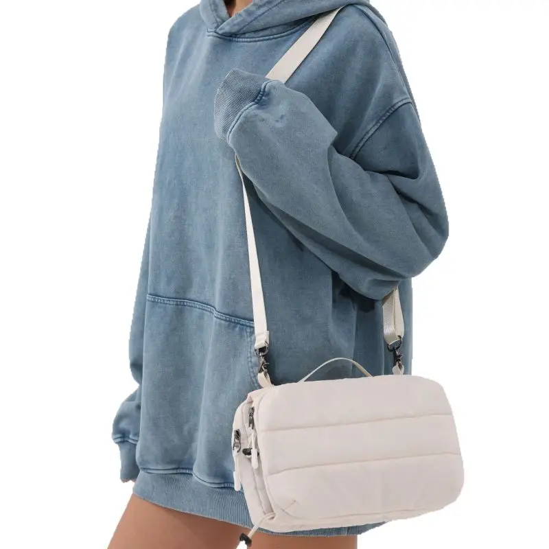 Custom Logo Women Travel Puffer Crossbody Purse Small Water Bottle Bag Puffy Hobo Handbag with Water Bottle Pocket