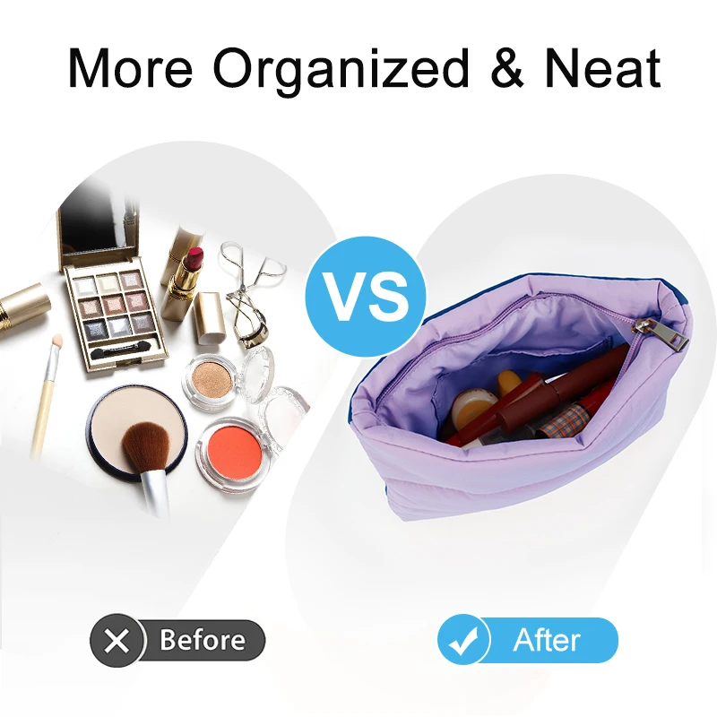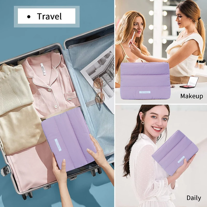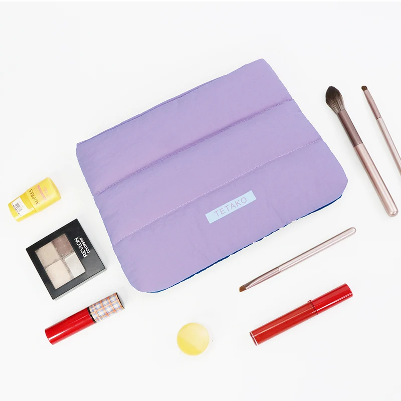 Custom Logo Travel Waterproof Small Zipper Puffer Cosmetic Pouches Quilted Nylon Puffy Makeup Bag