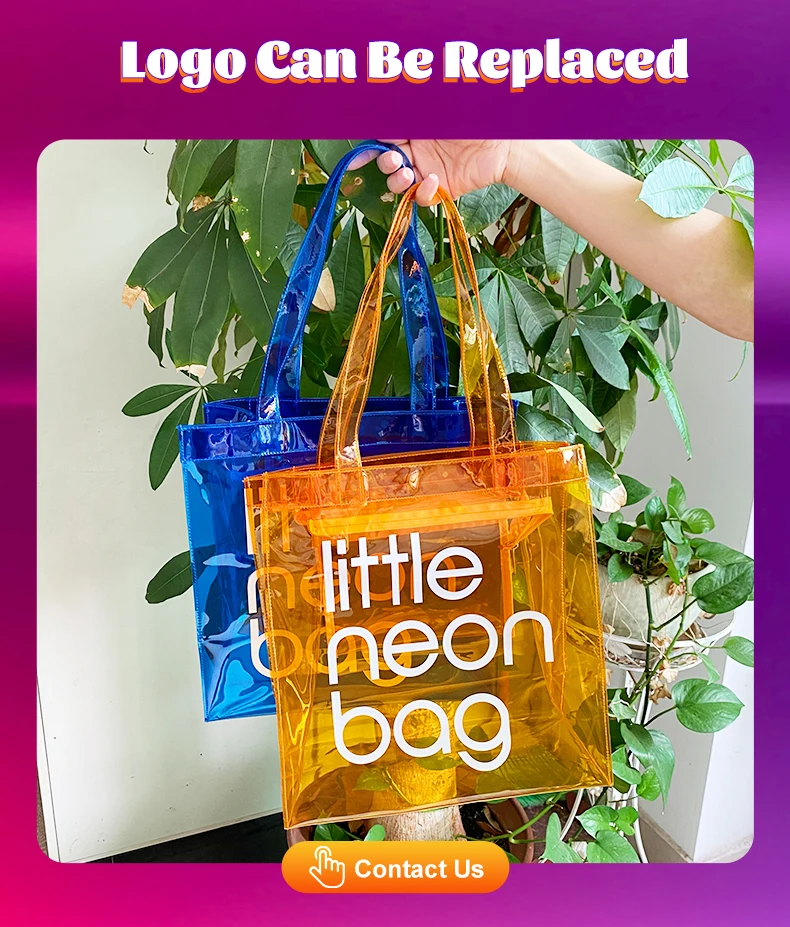 Custom Women Beach Waterproof Clear Transparent Little Neon PVC Shopping Tote Bag