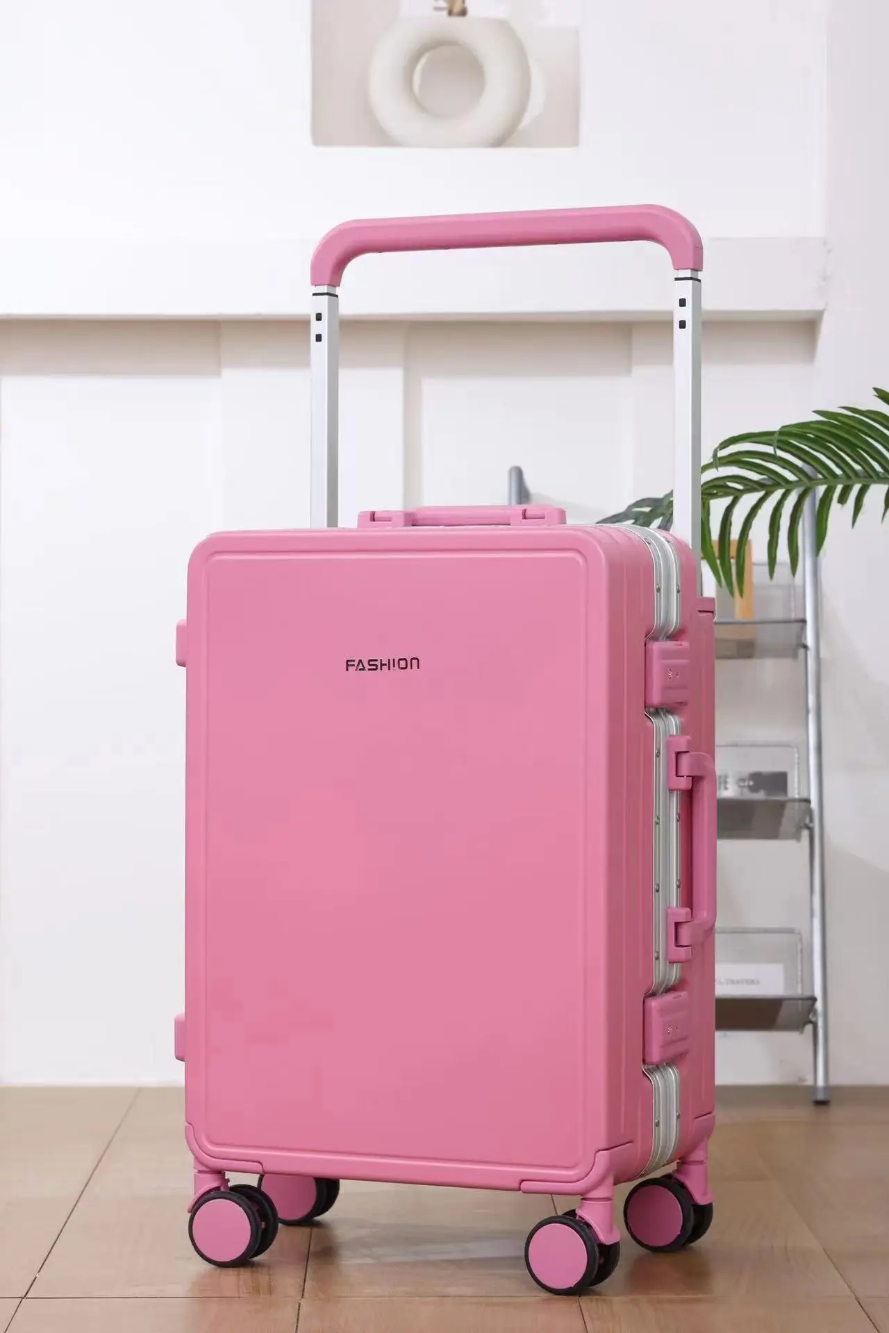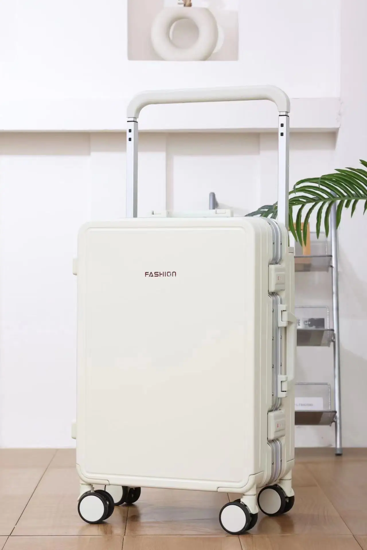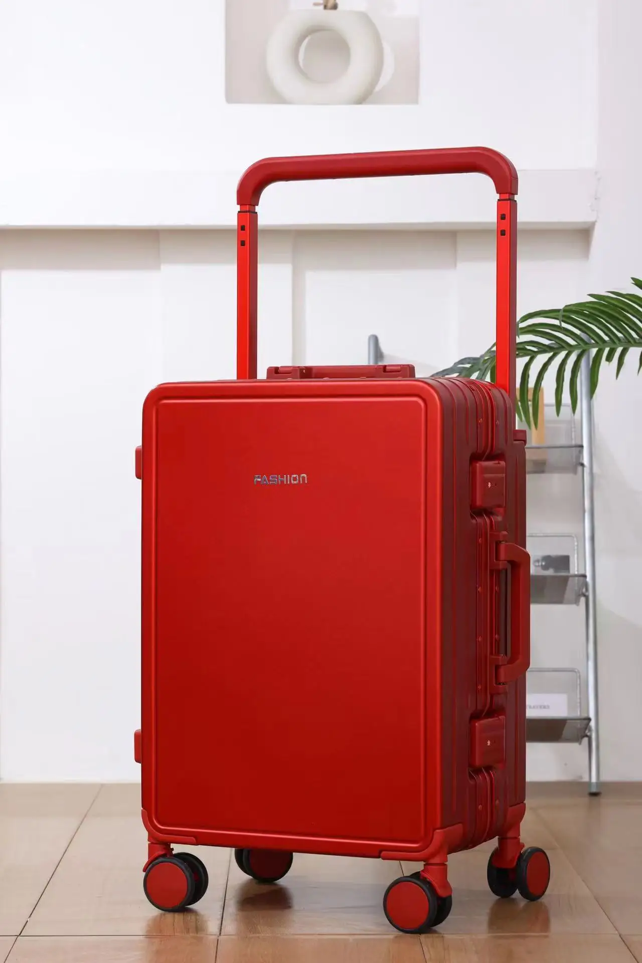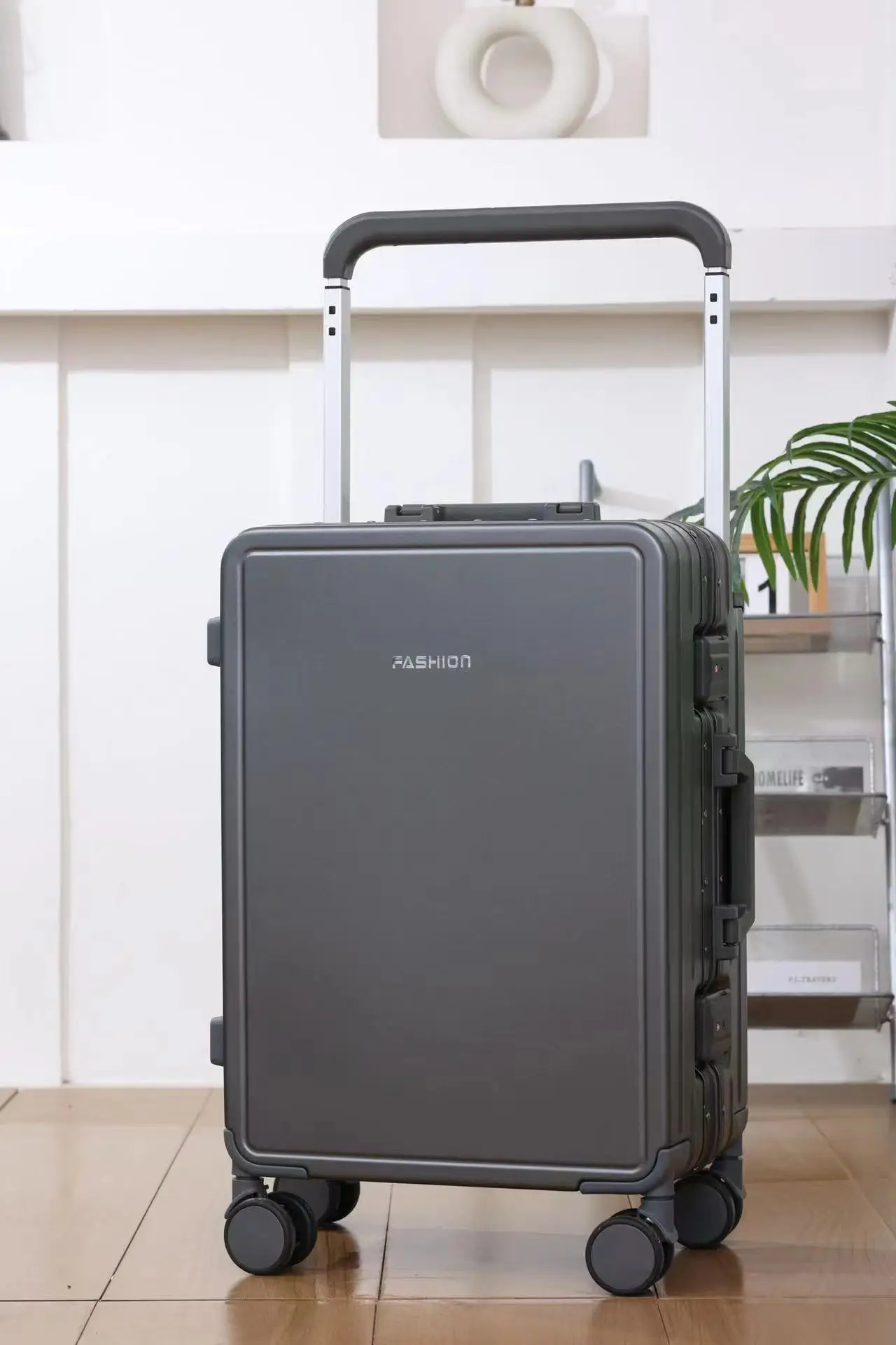 Large Suitcase Wide PC Luggage with Flat Shell Aluminum Frame Trolley with Spinner Caster Lock Alloy Wheel-Durable PC Material