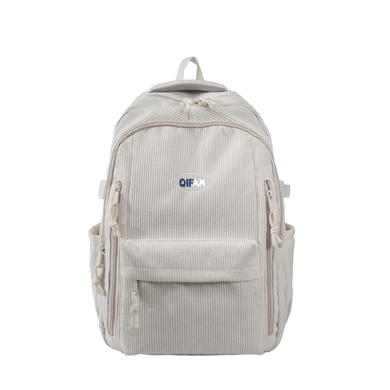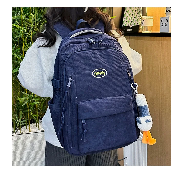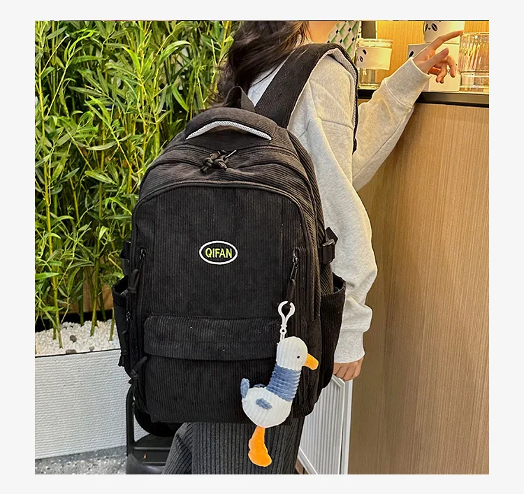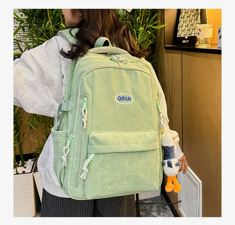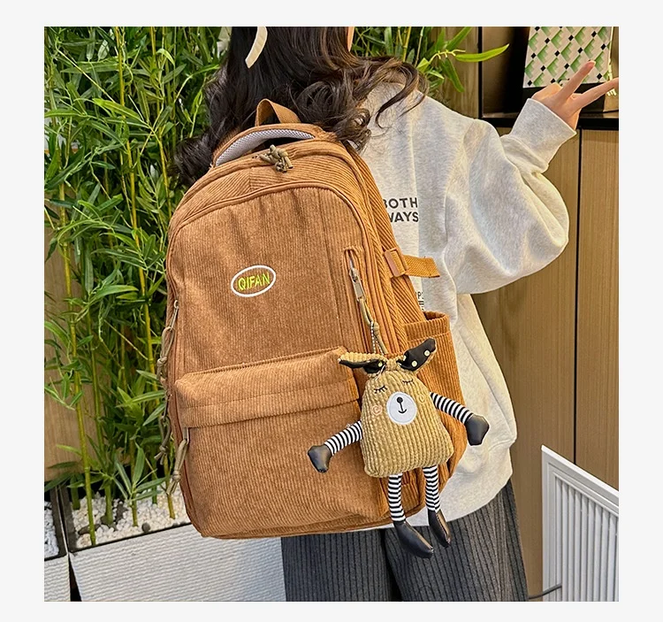 Japanese Style Corduroy Women's Large Capacity Casual Backpack Autumn Winter Versatile Zipper School Bag Polyester Middle High