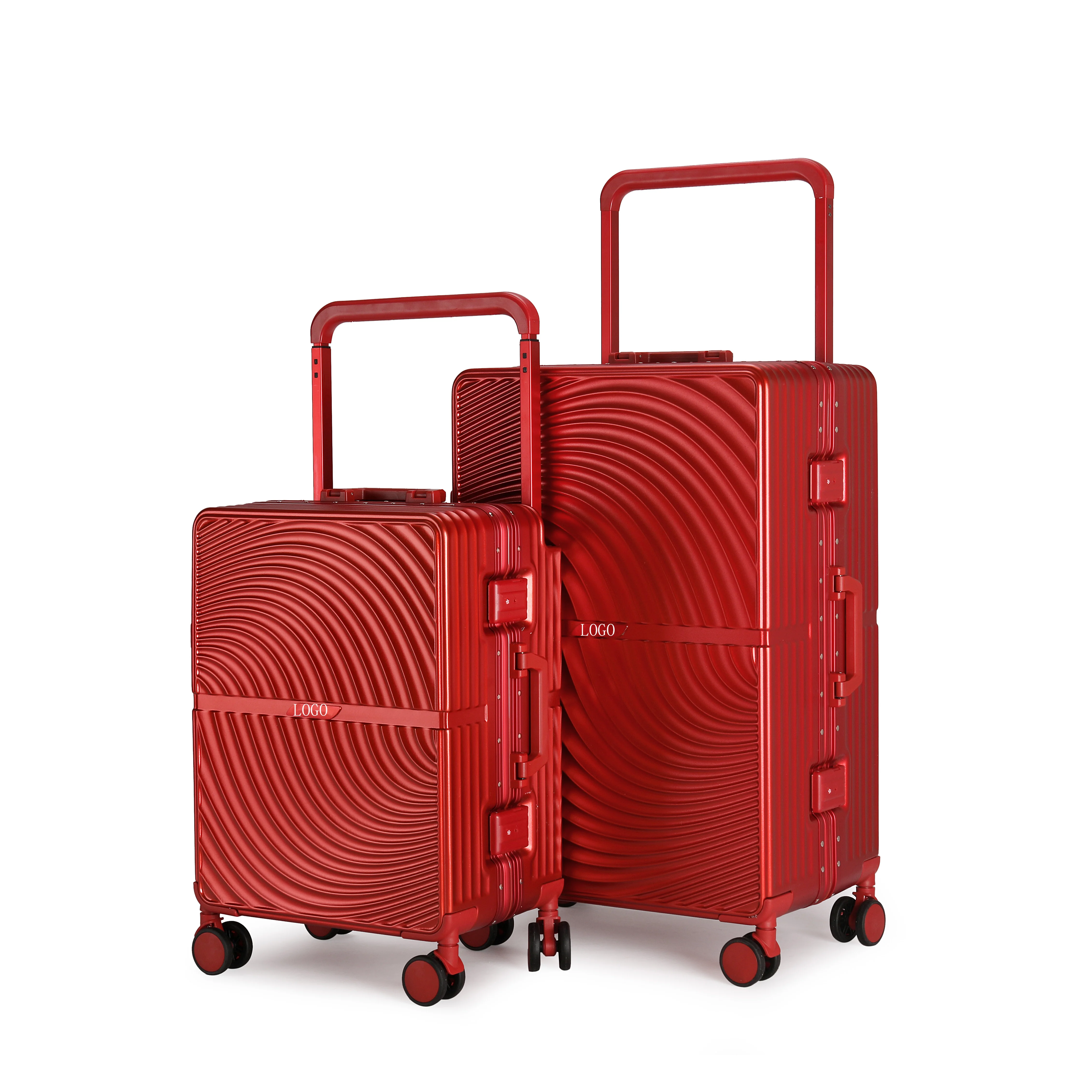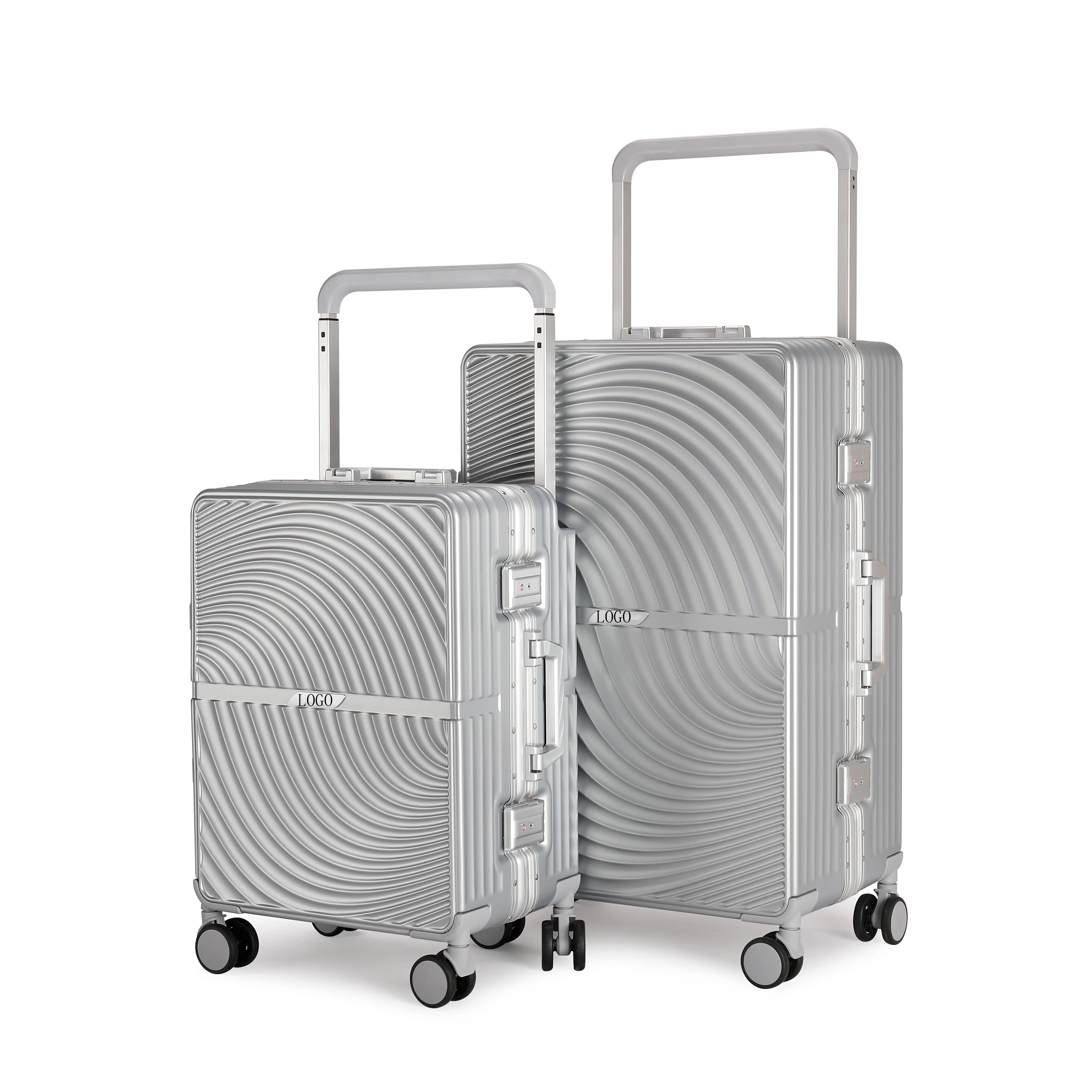 OEM/ODM Lightweight PC Luggage Set Modern Striped Design Travel Suitcases with Waterproof Spinner Wheels for Business Carry-Ons