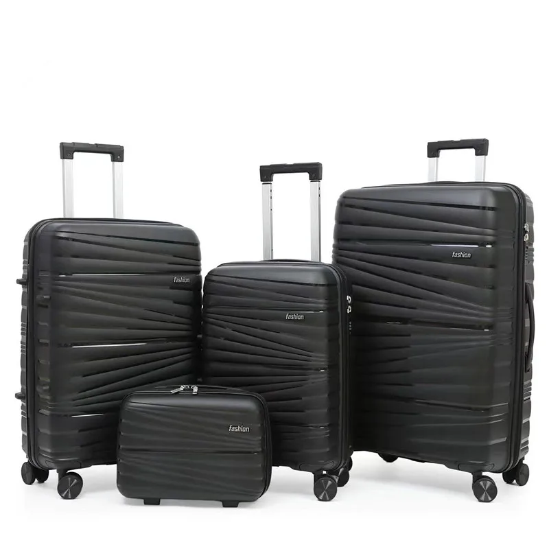 Wholesale Custom Logo 4 Piece Lightweight Eco-Friendly Waterproof Travel Trolley Luggage 14-28 Inch PP Trolley Luggage Set Lock