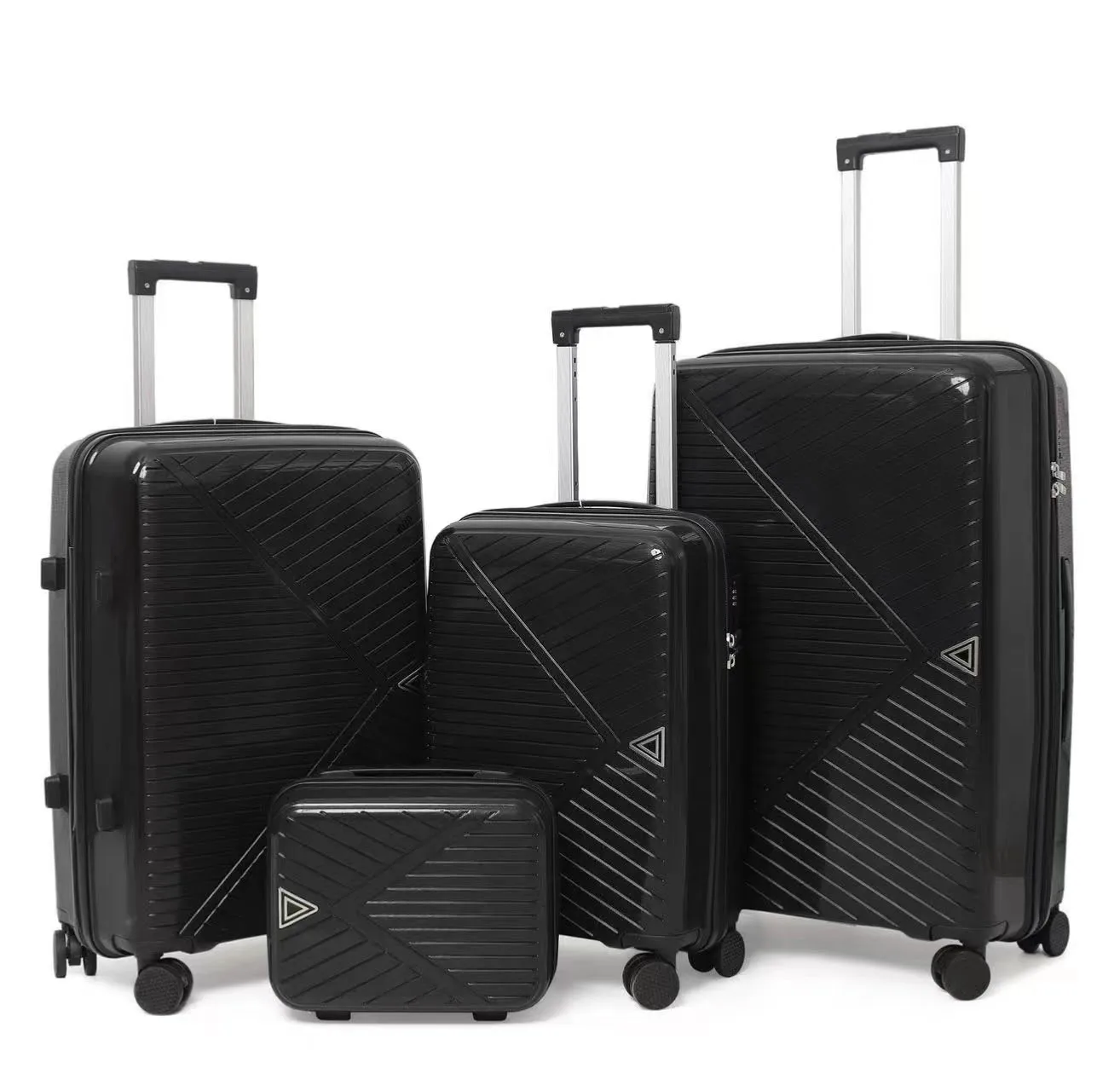 Luxury Unisex Fixed Caster Hard Shell PP Suitcase with Lock Eco-Friendly Light Weight Waterproof Drawbars for Travel