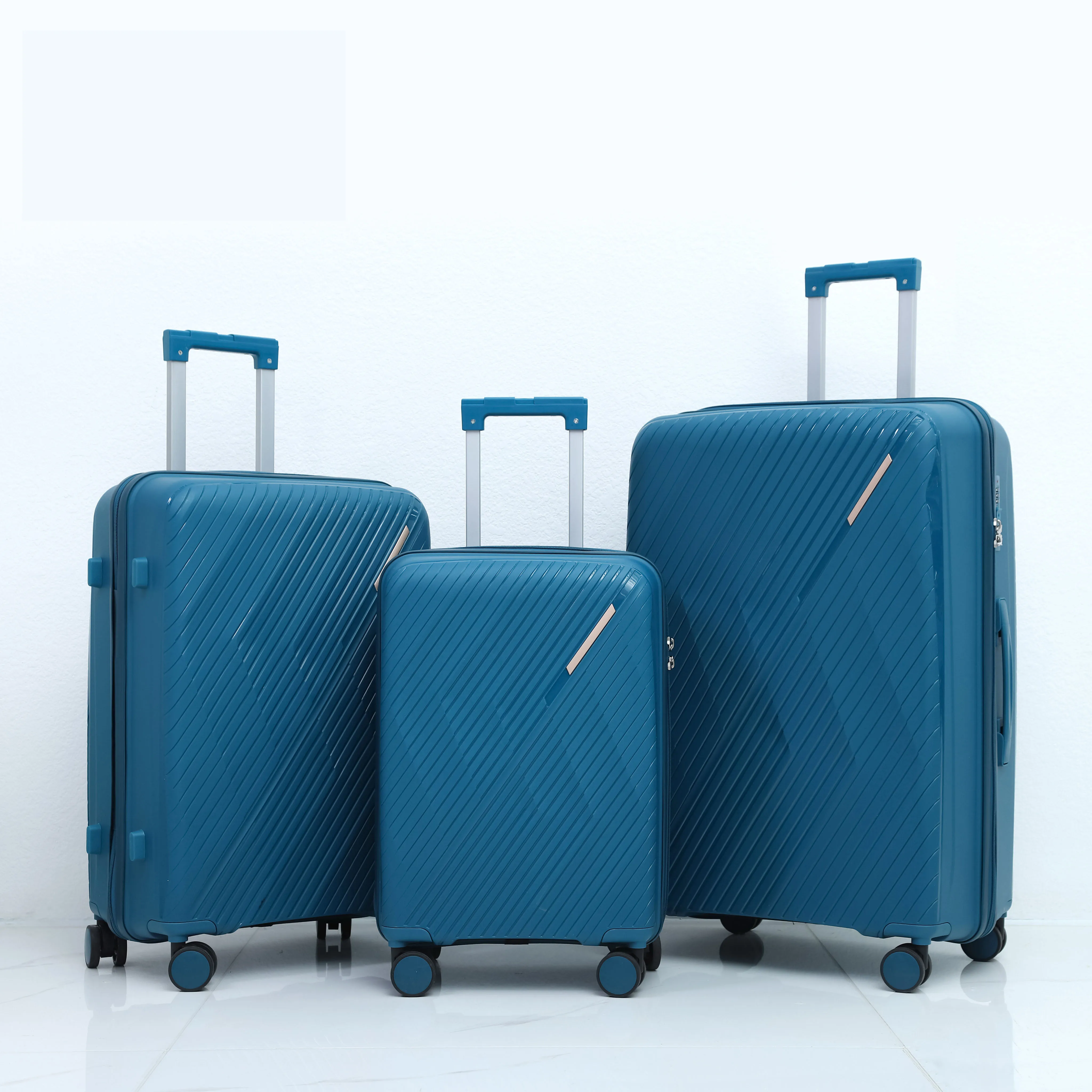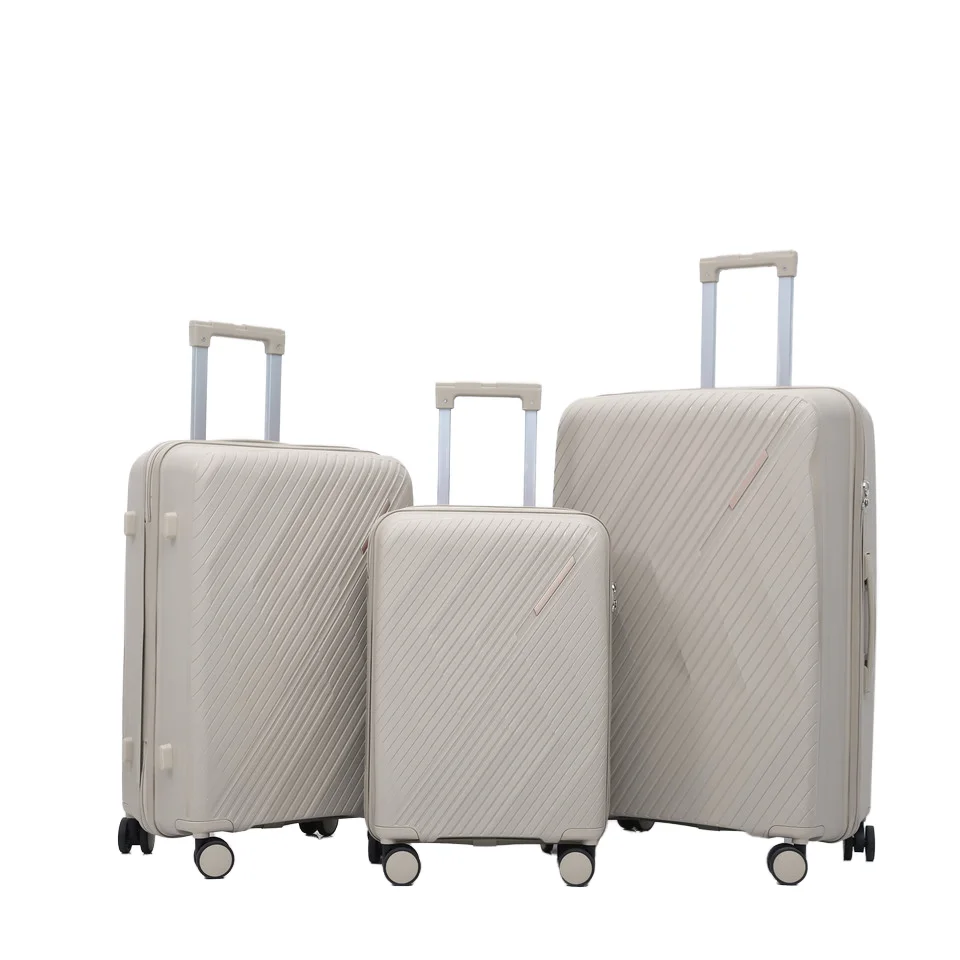 Modern 3-Piece PP Lightweight Waterproof Eco-Friendly Travel Luggage Set with Fixed Casters Lock Included Large Capacity