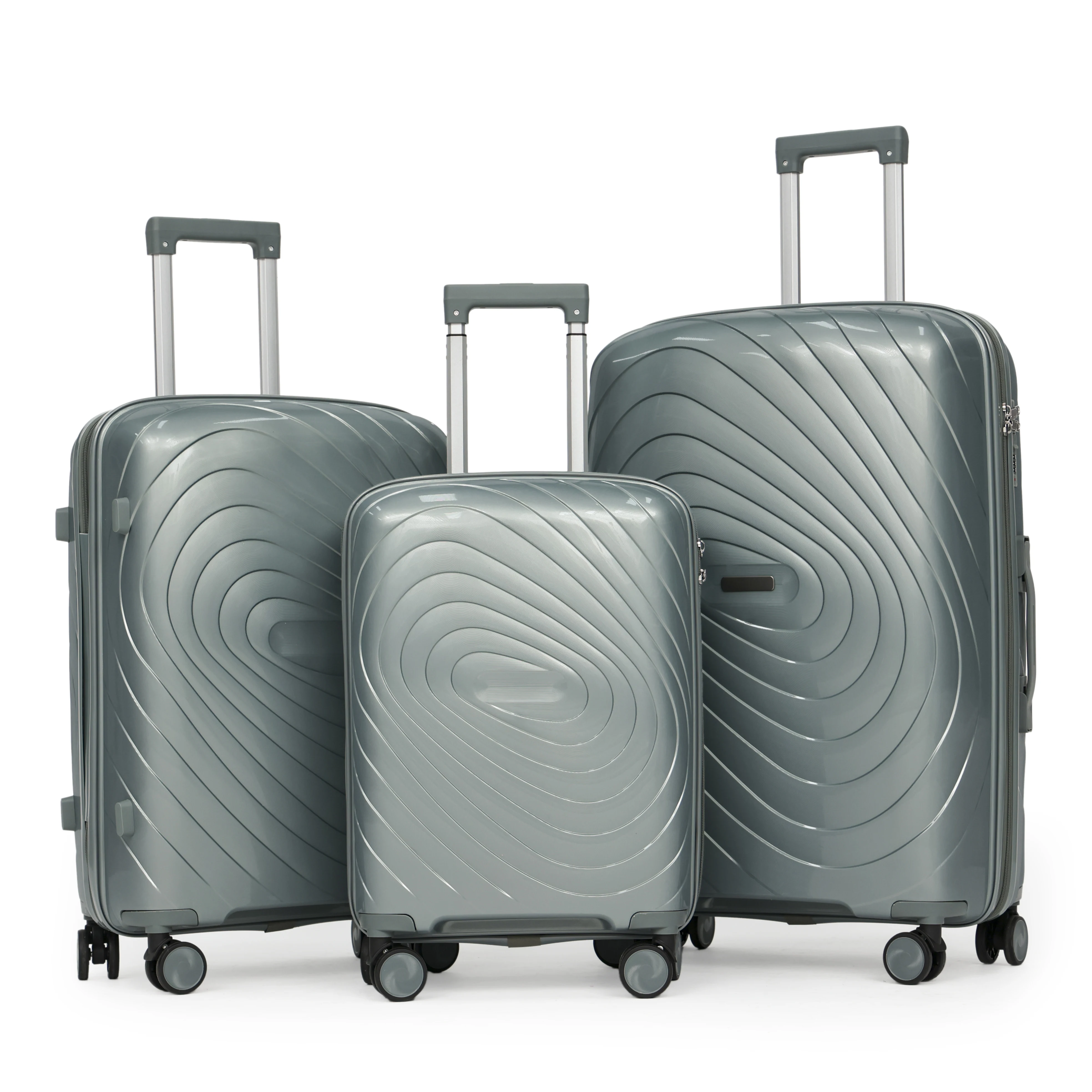 PP Suitcase Fashionable Four-piece Set 20" 24" 28" Lightweight Front Open Durable Anti-Theft Spinner Wheels TSA Water Resistant