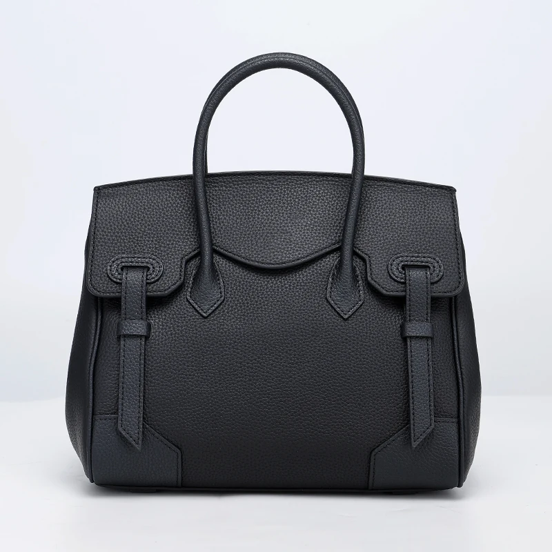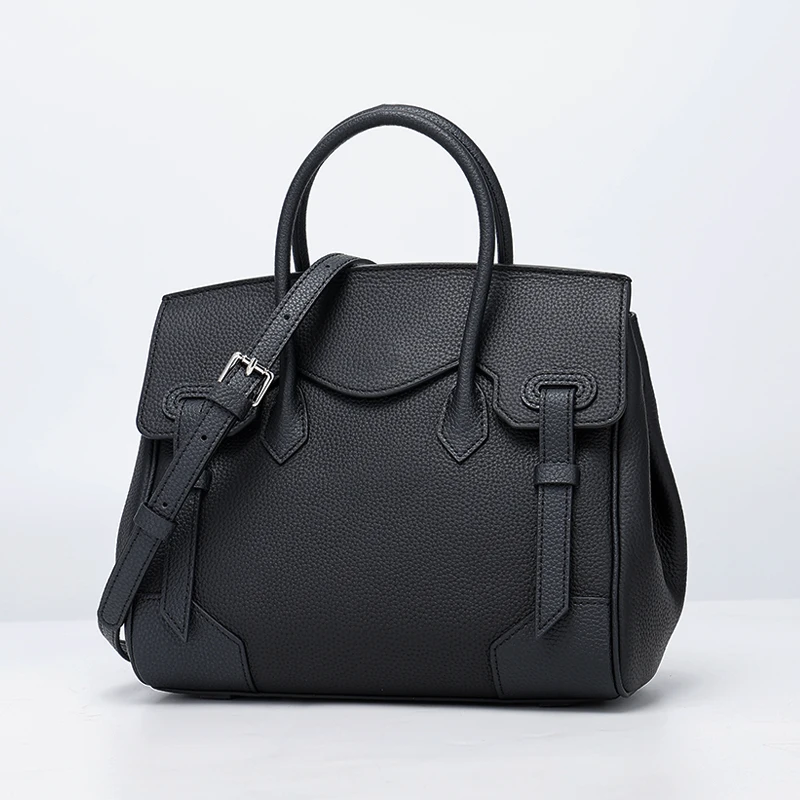 2026 Ladies Genuine Leather Black Fashion Tote Handbag Portable Casual Shoulder Bag for Women