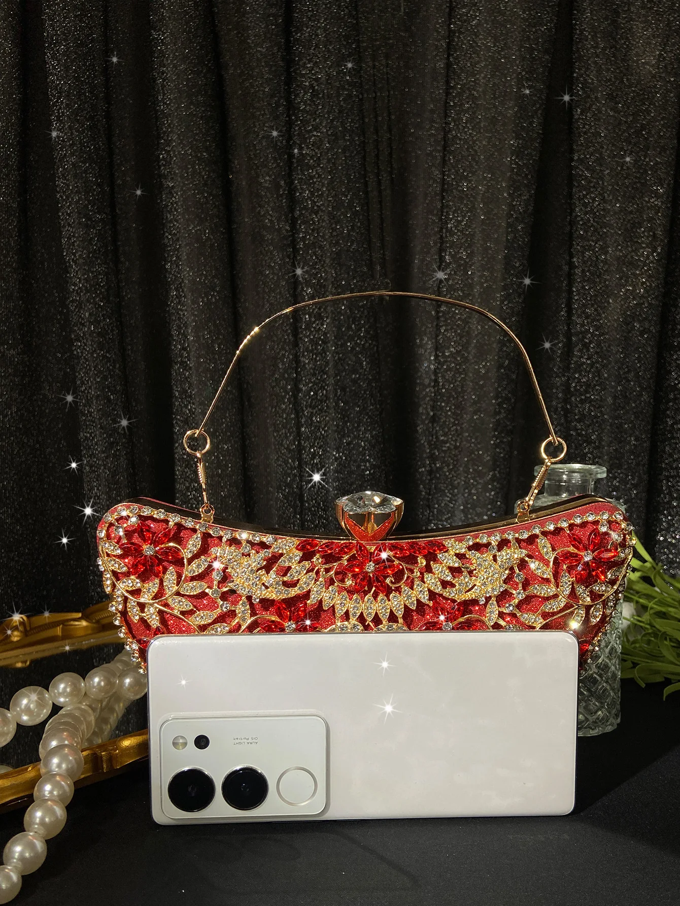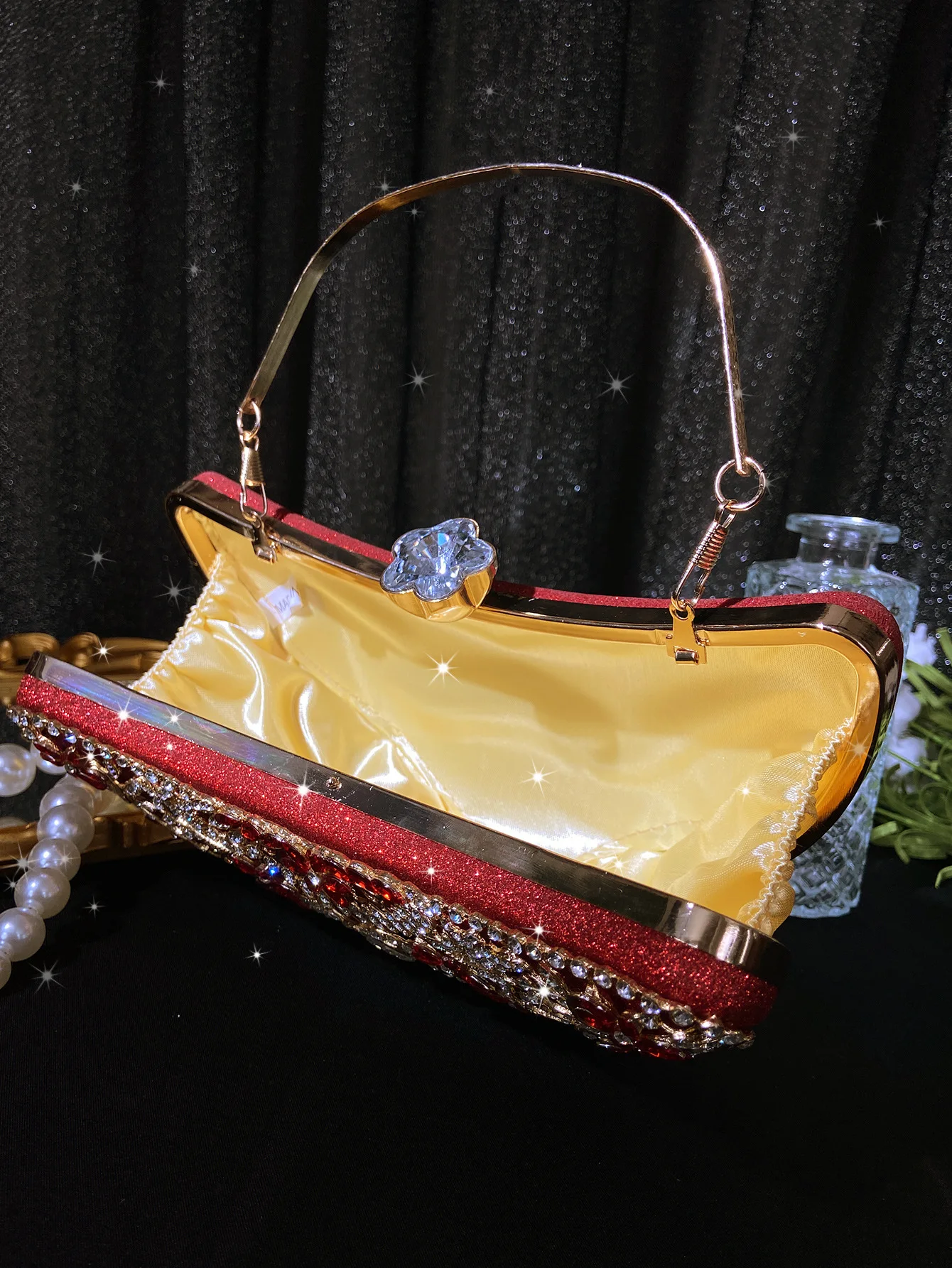 Wholesale Luxury Green Evening Clutch Bag for Women Fashion Candy Pattern with Rhinestone Crystal Bling Banquet Dinner Purse