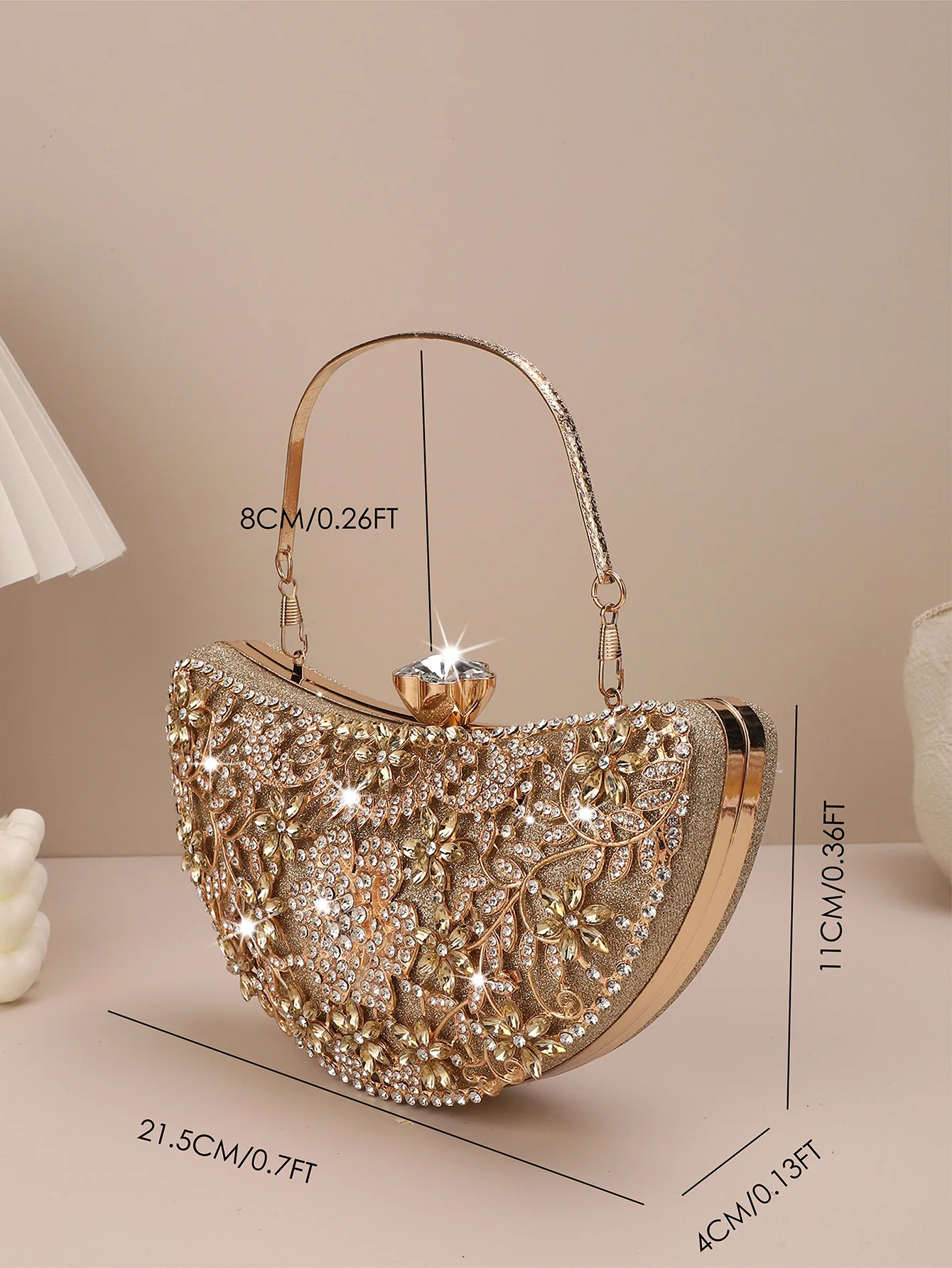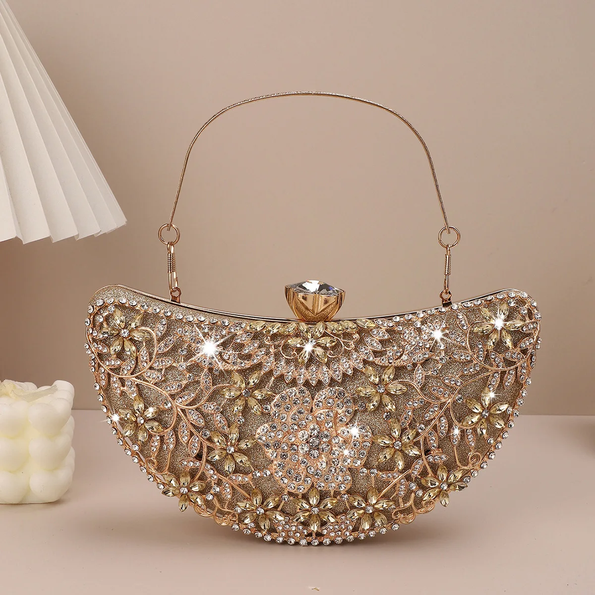 New Design Rhinestone Banquet Clutch Bling Bling Women Party Half Moon Shape Evening Bags Clutch