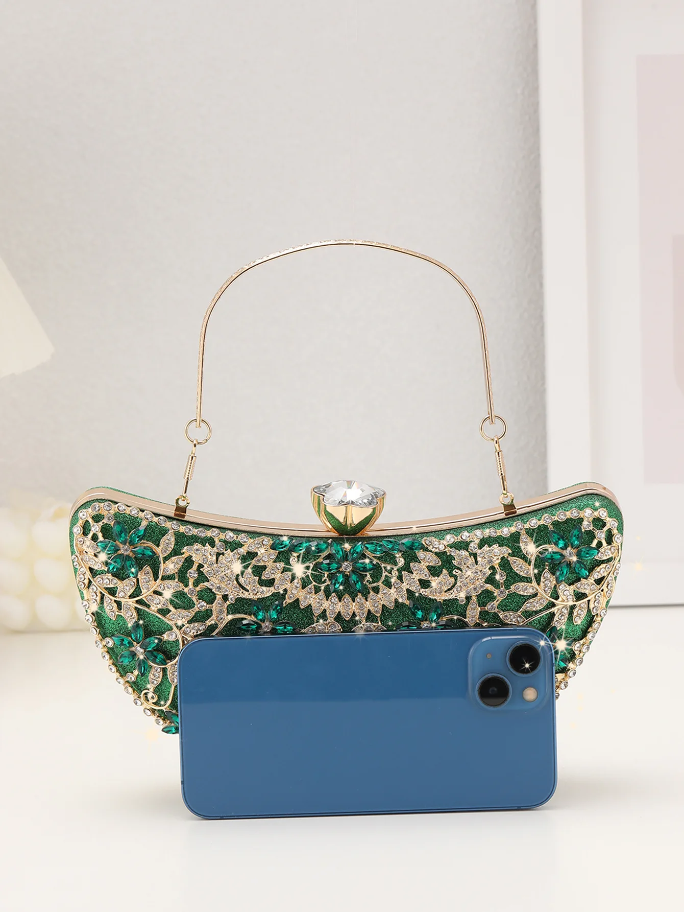 New Arrivals Vintage Diamond Evening Clutch Bag Elegant Handbag Bridal Wedding Golden Shiny Rhinestone Classic Polyester 7