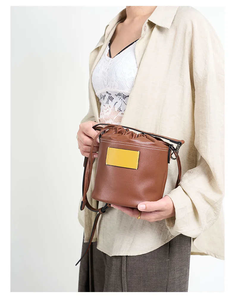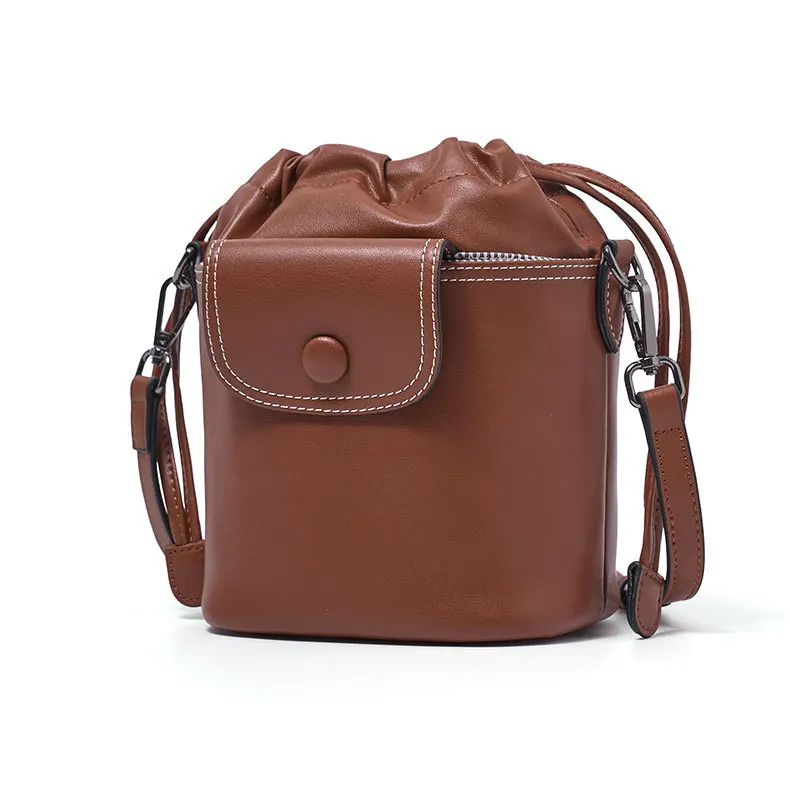 Designer Vintage Popular Ladies Women Crossbody Shoulder Hand Bags Fashion Casual Large Capacity Cowhide Leather Bucket Bag 2026