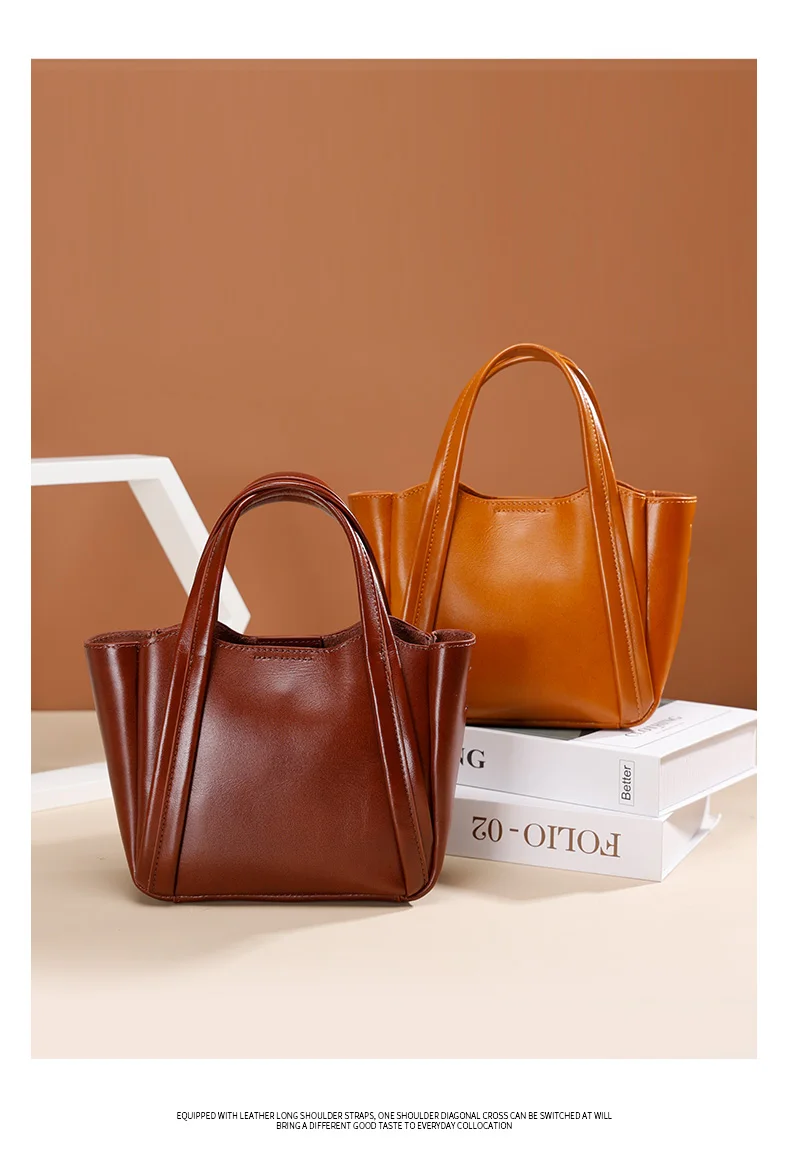 Designer Vintage Popular Ladies Women Crossbody Shoulder Hand Bags Fashion Casual Large Capacity Cowhide Leather Bucket Bag 2026