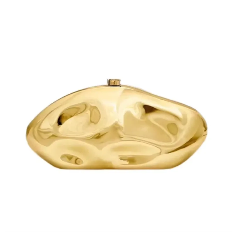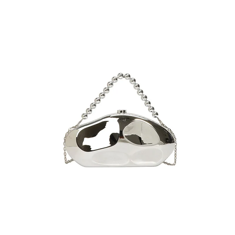 2026 New Acrylic Candy Pattern Shell Shape Clutch Bag Women Evening Party Cute Metal Shiny Gold Silver Handbag