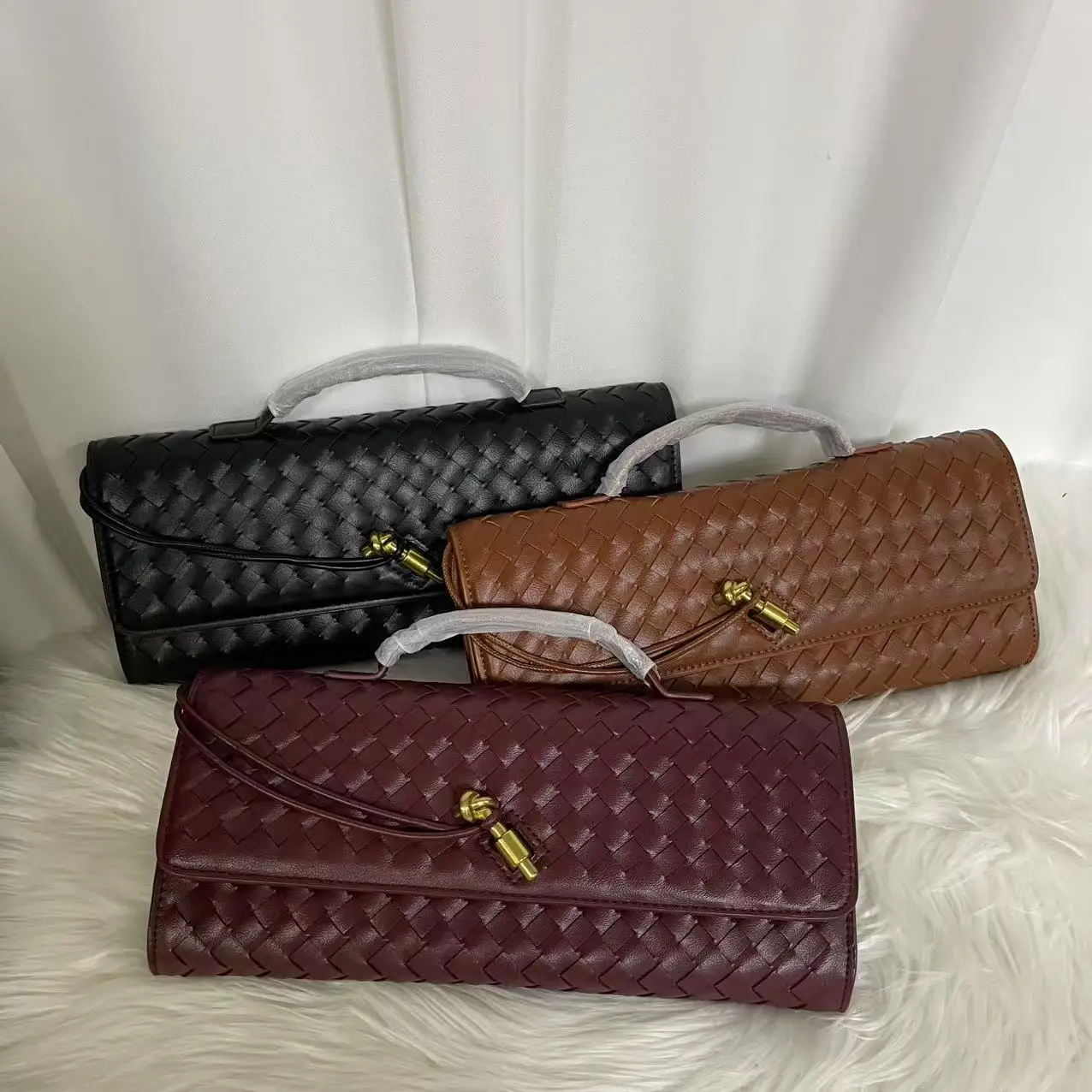 Hot-selling Handmade Woven Soft Leather Bag Wholesales Clutch Women Handbags Pu Leather Luxury Purse Fashion Bags for Girls