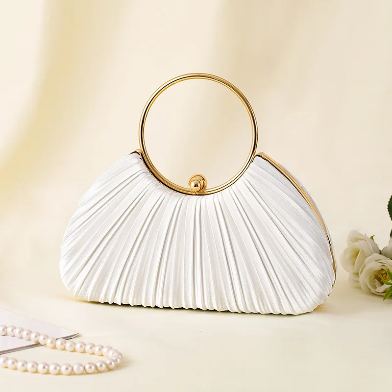 NEW Pleated Evening Bag Ladies Handbag Ladylike Temperament Banquet Clutch Bag Dress Bag Ring Handbag