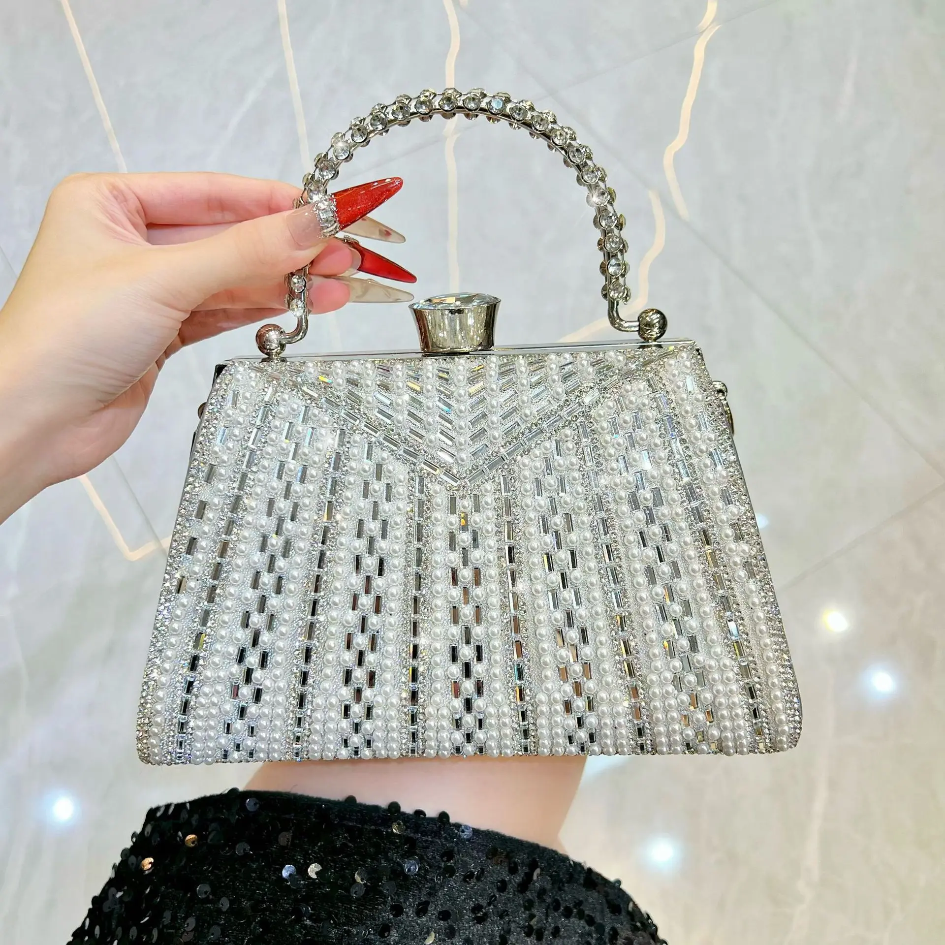 Fashion PU Leather Shoulder Bag Luxury Rhinestone Clutch Bag Evening Bags Wedding Party Clutch Purses for Women Handbags