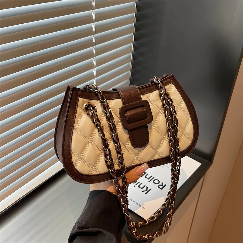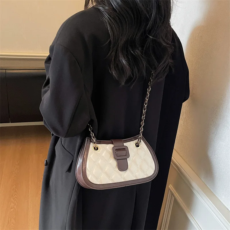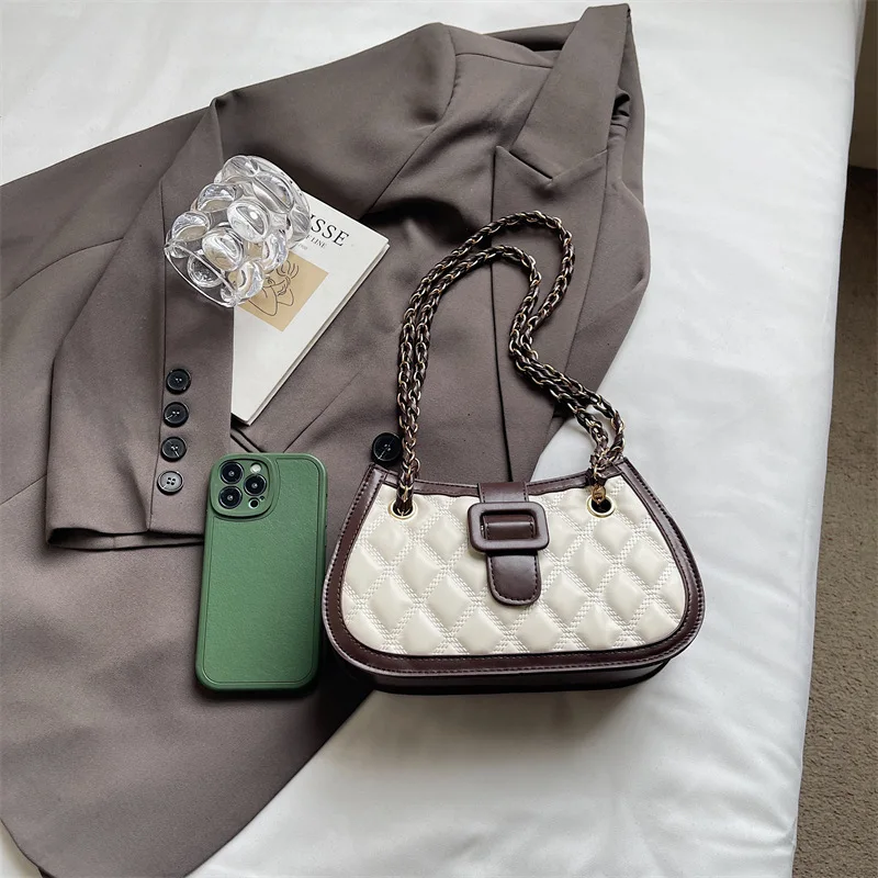 Large Capacity Casual 2026 New Autumn and Winter Fashionable Embroidered Thread Diamond Grid Chain Women's Shoulder Handbag