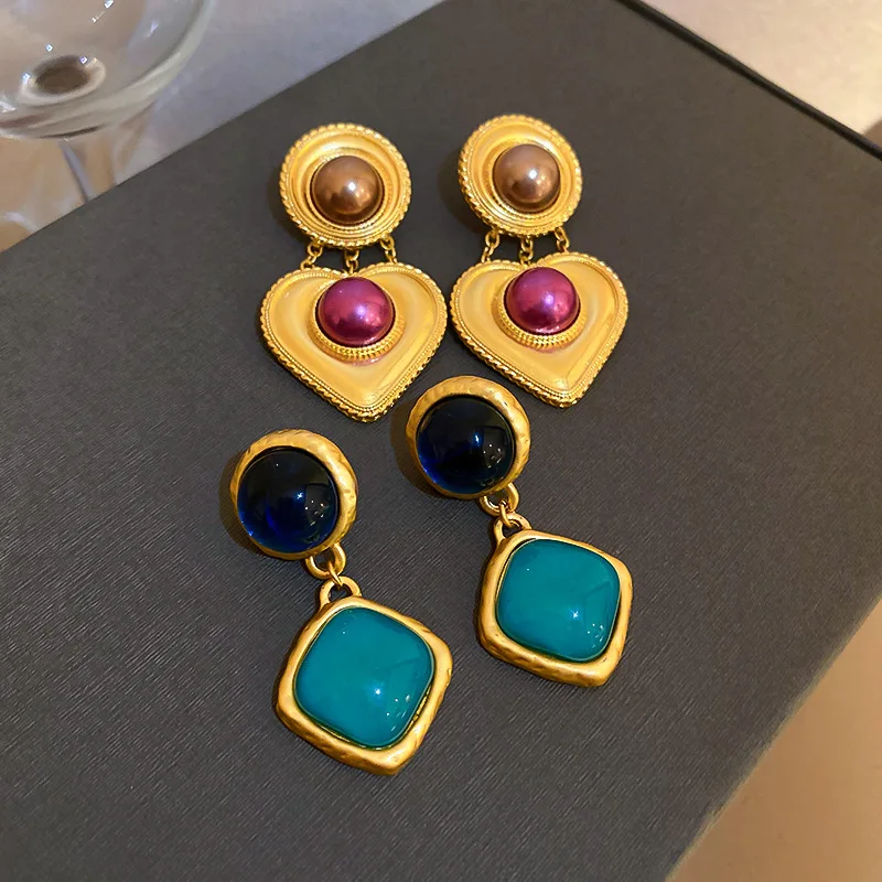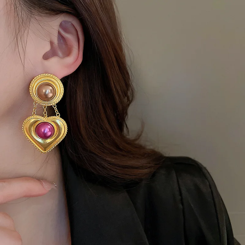 Sweet Burgundy Enamel Gold Color Metal Love Heart Hanging Dangle Earrings for Women Girl Earrings Vintage Jewelry
