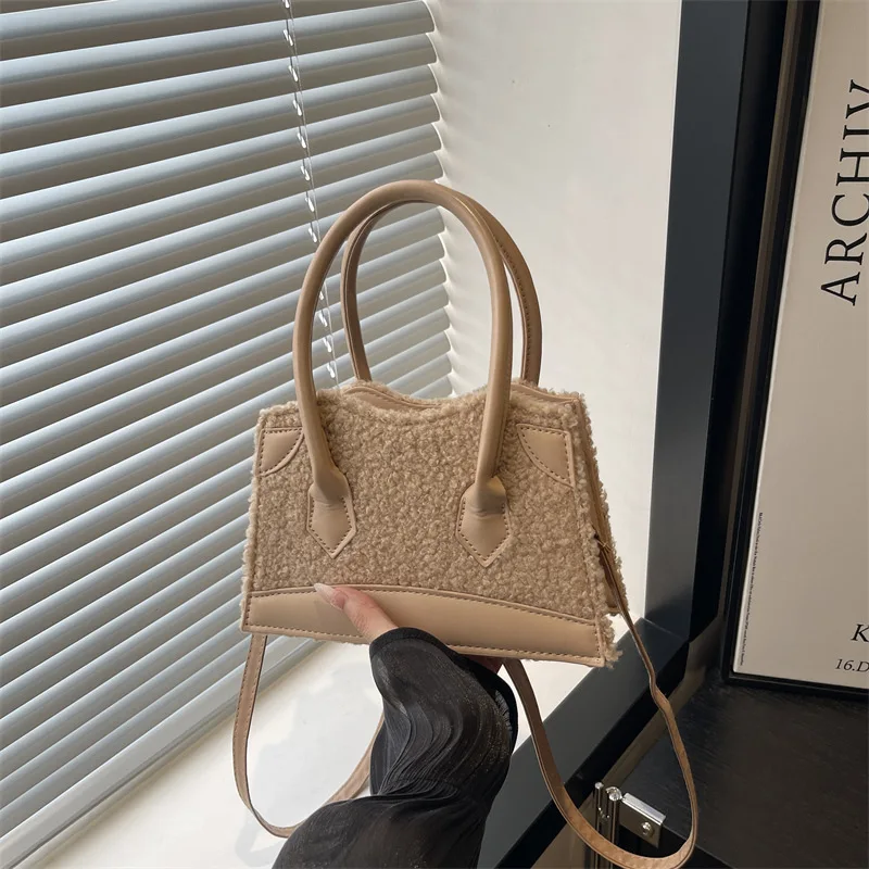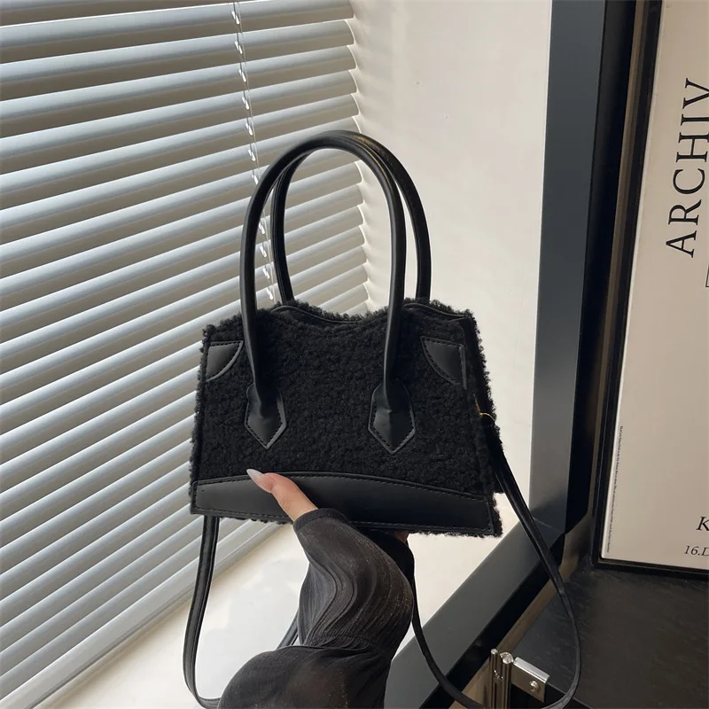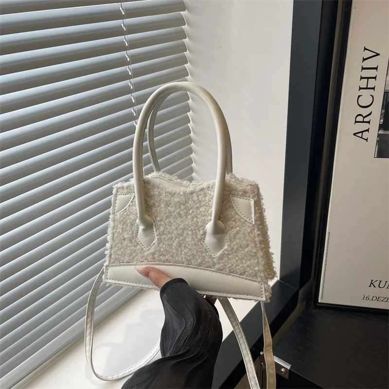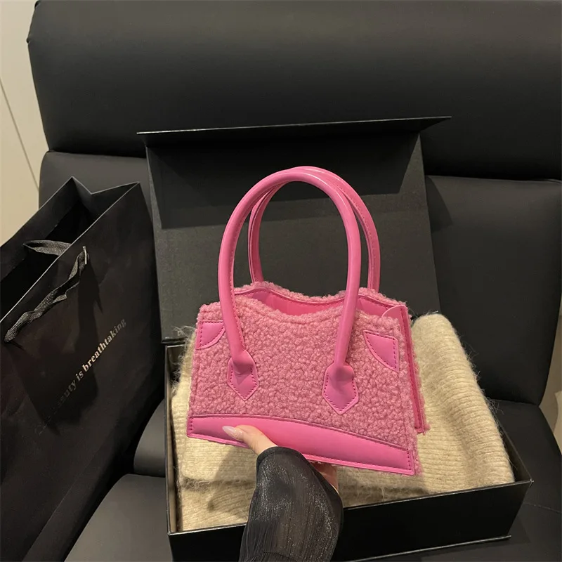 Sweet Cute Plush Handbag Women Faux Shearling Panel Ladies 2026 New Autumn Winter Fashion Chic Shoulder Bag