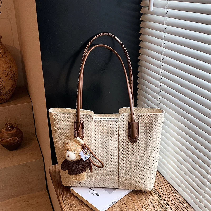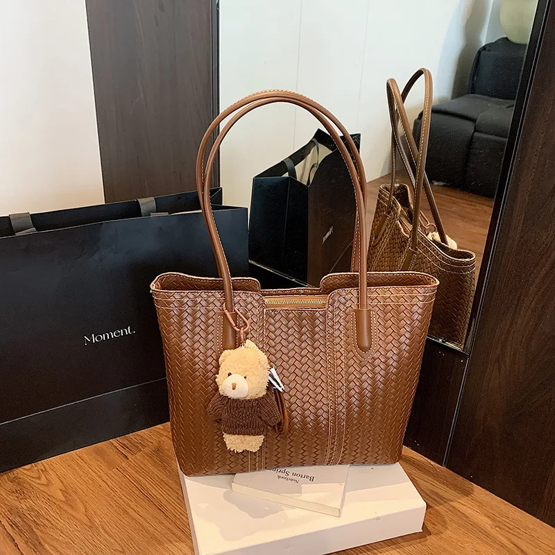 2026 Women Woven PU Tote Bag Large Commuting Capacity Vintage Shoulder Crossbody Bohe Retro Casual Multifunctional Purse