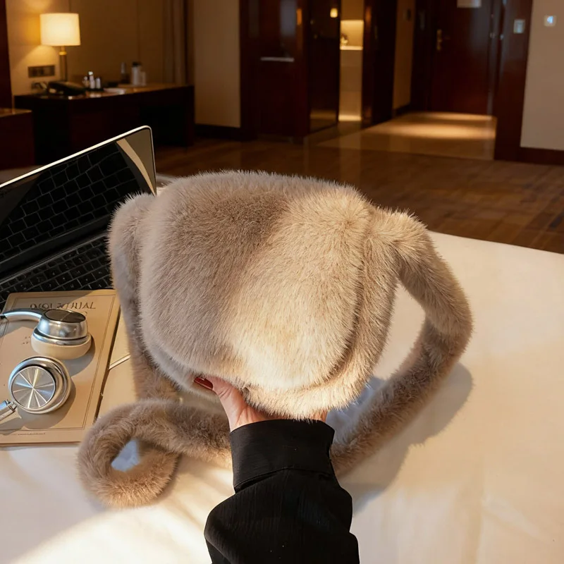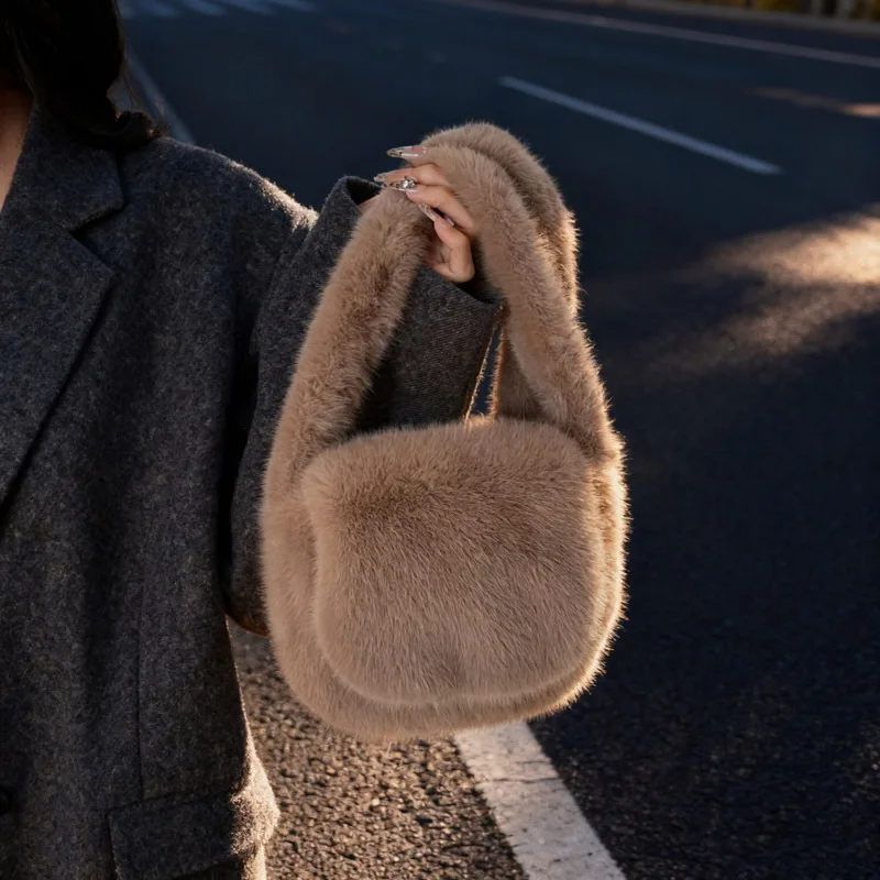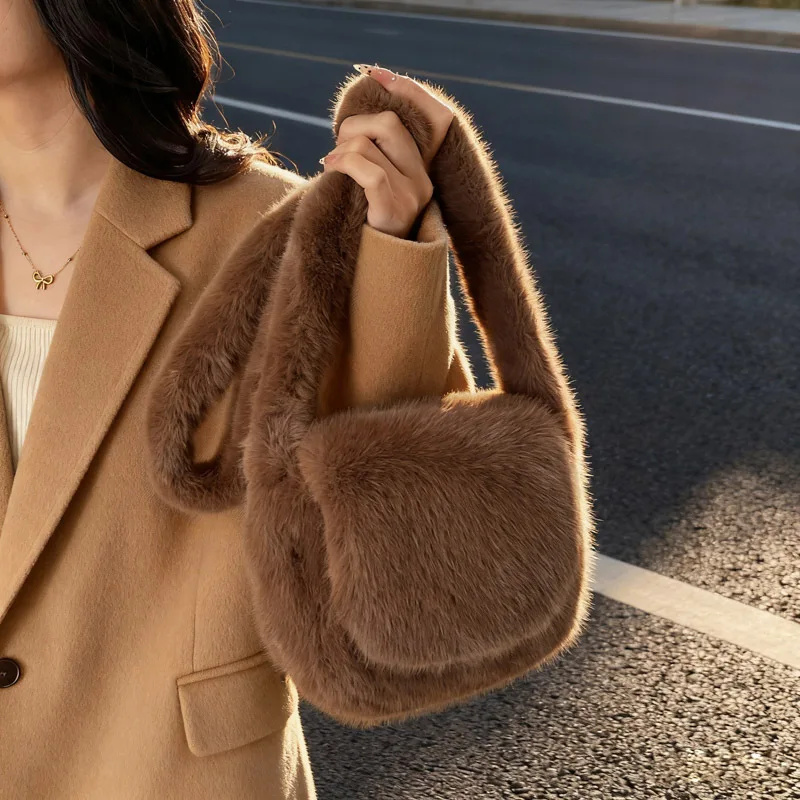 Women's Bags Winter Trend Designer Luxury Handbag Fluffy Tote Bags Woven Carry Handle Small Mini Crossbody Bags