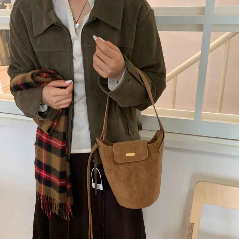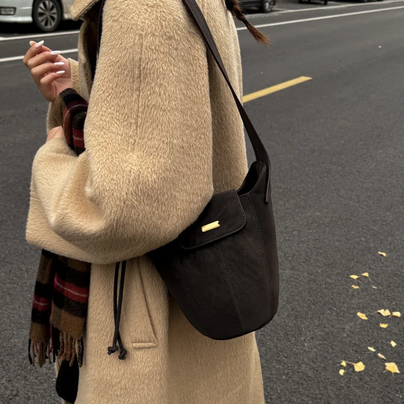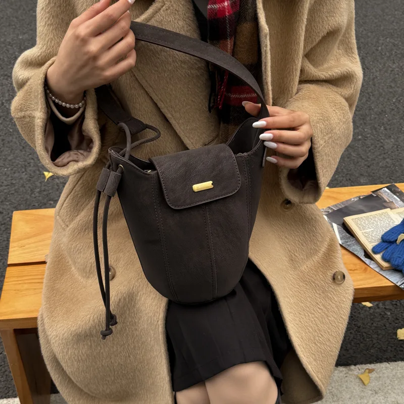 Designer Vintage Popular Ladies Women Crossbody Shoulder Hand Bags Fashion Casual Large Capacity Cowhide Leather Bucket Bag 2026